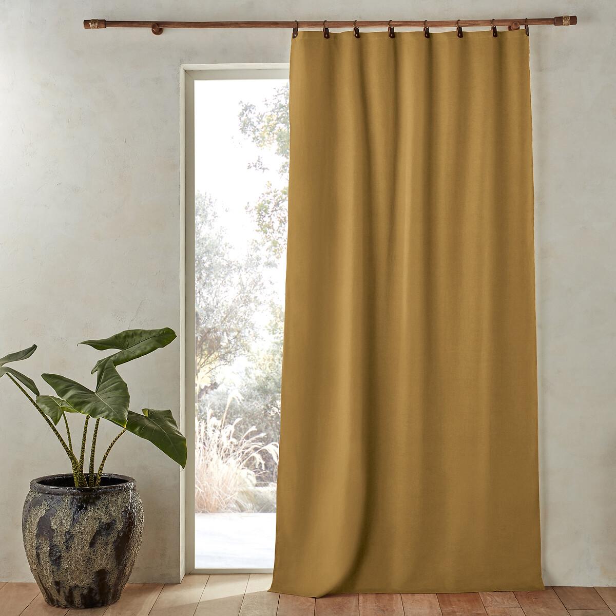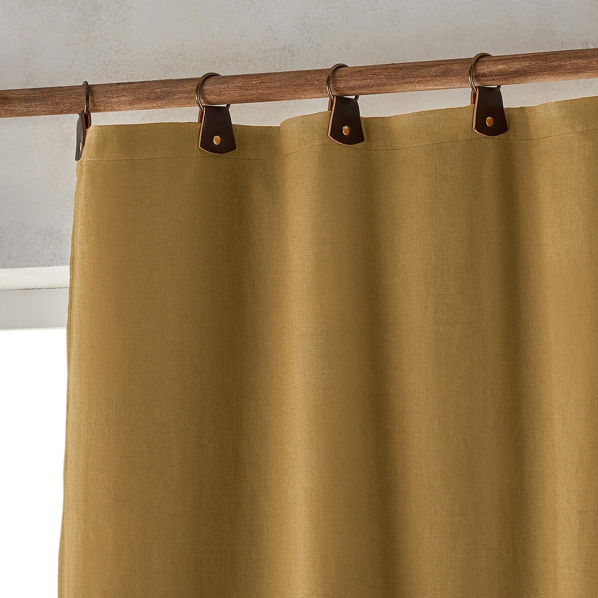 Private washed linen blackout curtain with faux leather loops. Simple and chic, this washed linen curtain softens and takes on a very sought-after subtle crumpled look. Product Details • 100% linen • Washed linen • 100% viscose flocking • Lining 100% polyester Finish • Ready to hang with finished hem • Leather-effect loops with aged metal rings diameter 4cm. Care instructions • Washable at 40°CSizes • Width 140 x Drop 180cm • Width 140 x Drop 220cm • Width 140 x Drop 260cm • Width 140 x Drop 350cm