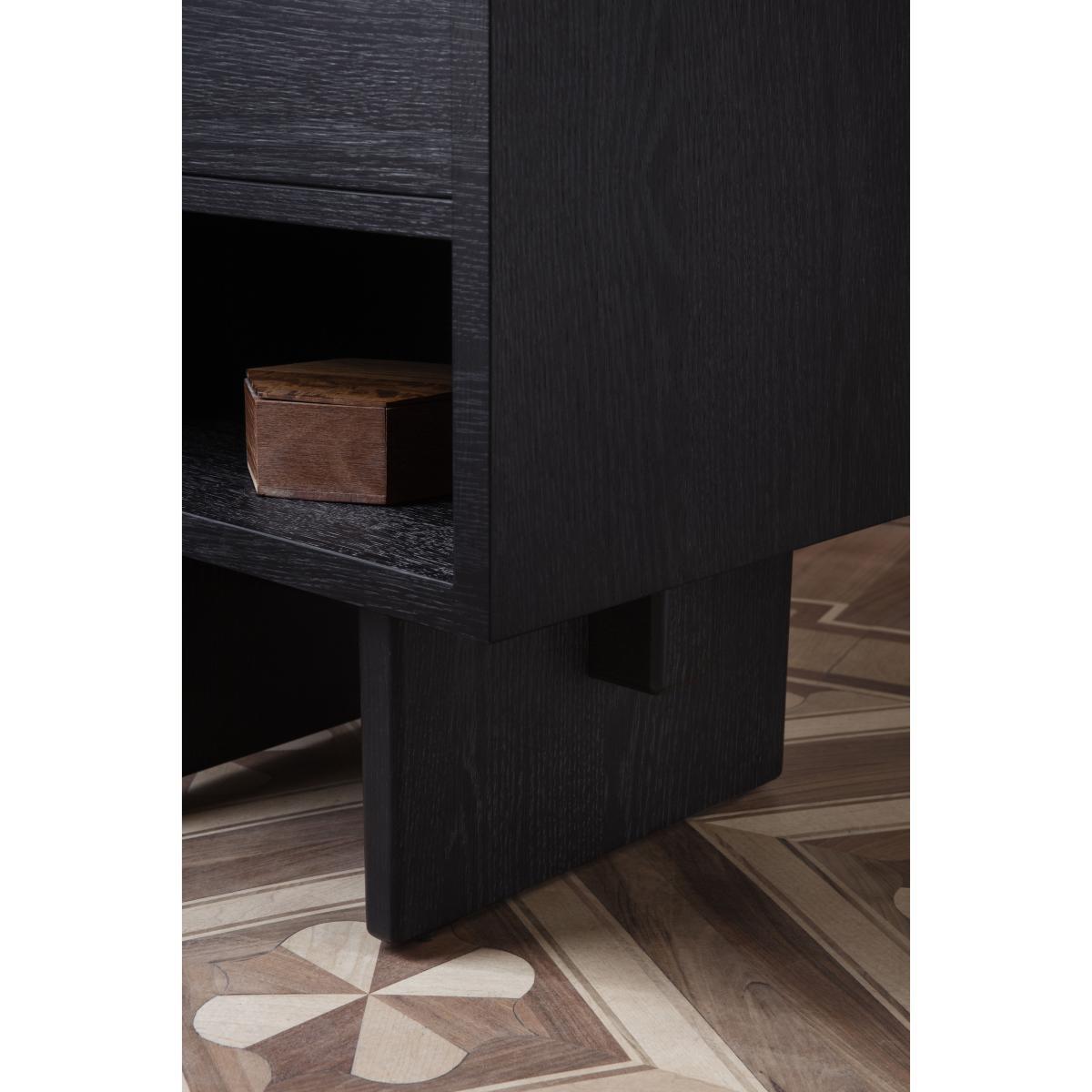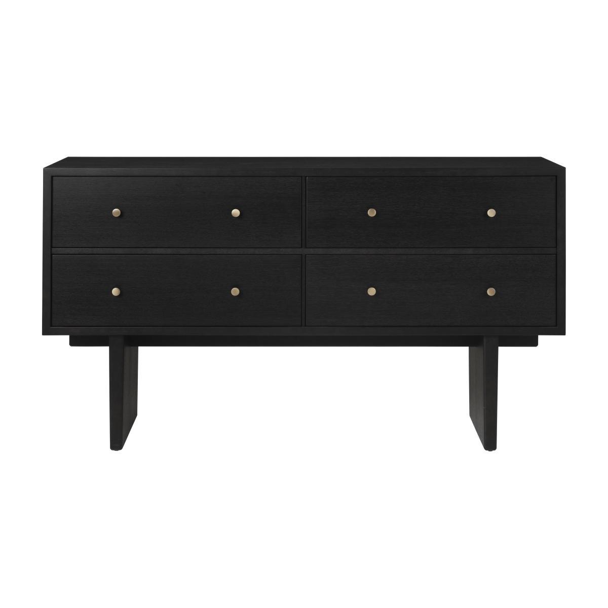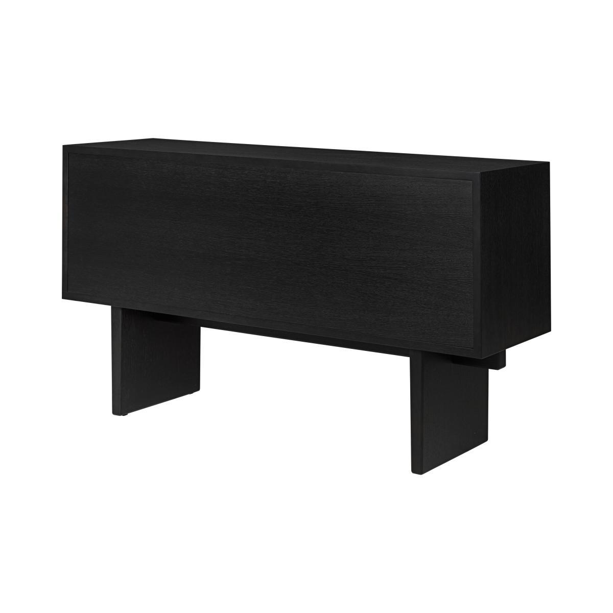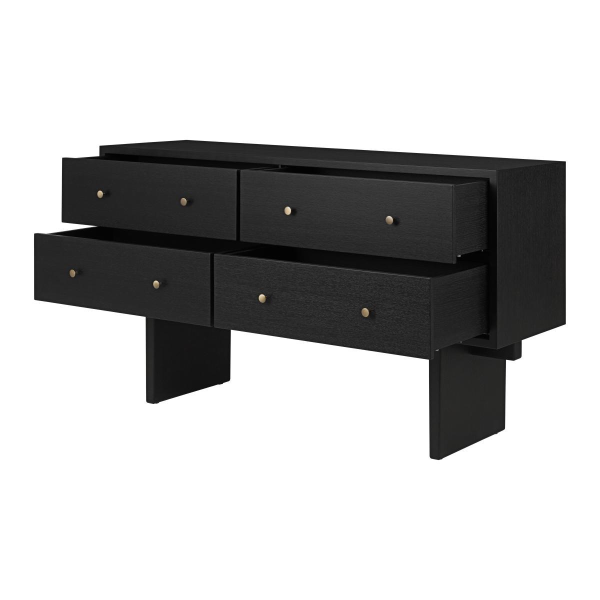 Danish design house Gubi continues to bridge the gap between eras with a new collection that stands the test of time. To design the Private collection, Danish studio Space Copenhagen was inspired by Japanese craftsmanship, as Charlotte Perriand and Hans J. Wegner did before them. The Private collection is an exercise in purity, symmetry, balance and restraint. Subtly refined, Private furniture combines purity and elegance. This furniture reflects the culture of Japanese design where form must meet function without decorative, unnecessary or superfluous additions. A sensitivity that’s also expressed in the choice of materials (rigorously selected oak veneer), through a keen eye for detail and the influence of craftsmanship. The simplicity of form emphasises the prowess of traditional cabinetmaking. Private uses artisanal techniques, such as grain-matched veneers to ensure a perfectly even surface. Private uses the art of Japanese joints. This thousand-year-old art of Japanese carpenters consists of assembling the different pieces of wood without glue or nails, by simple interlocking. Private furniture is all supported by two large vertical panels connected by a horizontal wooden beam. This feat of structural engineering elevates each part, and allows it to support enormous weight, while still giving a feeling of lightness. The furniture with its rigorous straight lines is embellished with gilded brass handles. These solid, timeless pieces of furniture are made to last. Space Copenhagen: “For the Private collection, we took inspiration from the beauty of vintage Japanese storage furniture. The defining detail for each piece is a Japanese wood joint. We went for a simple, strong, recognisable language, focused on high quality, beautiful materials and refined, elegant details. ” The Private sideboard has four deep drawers arranged symmetrically.