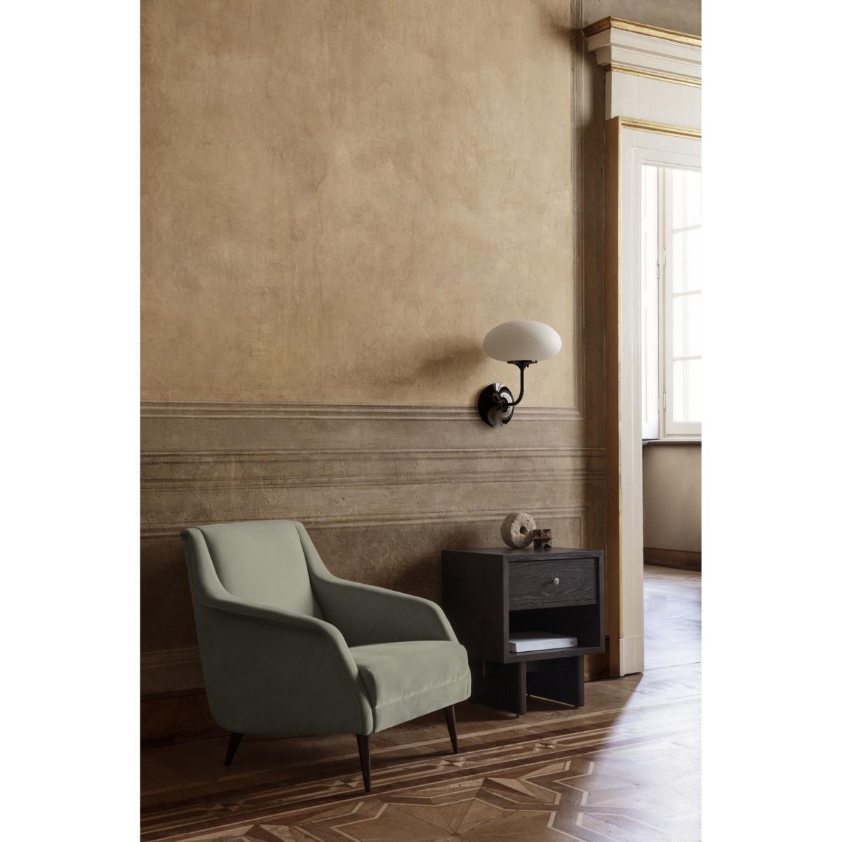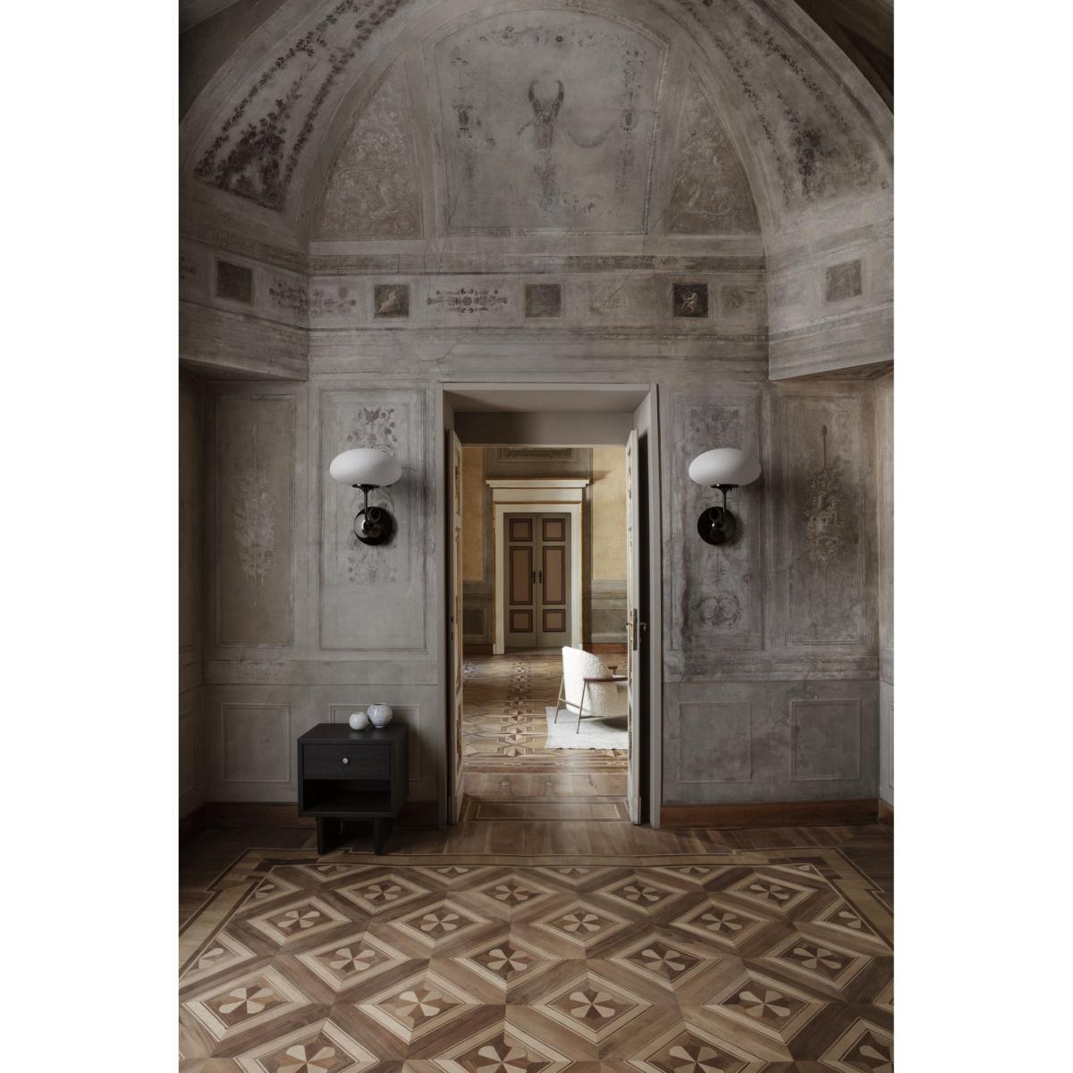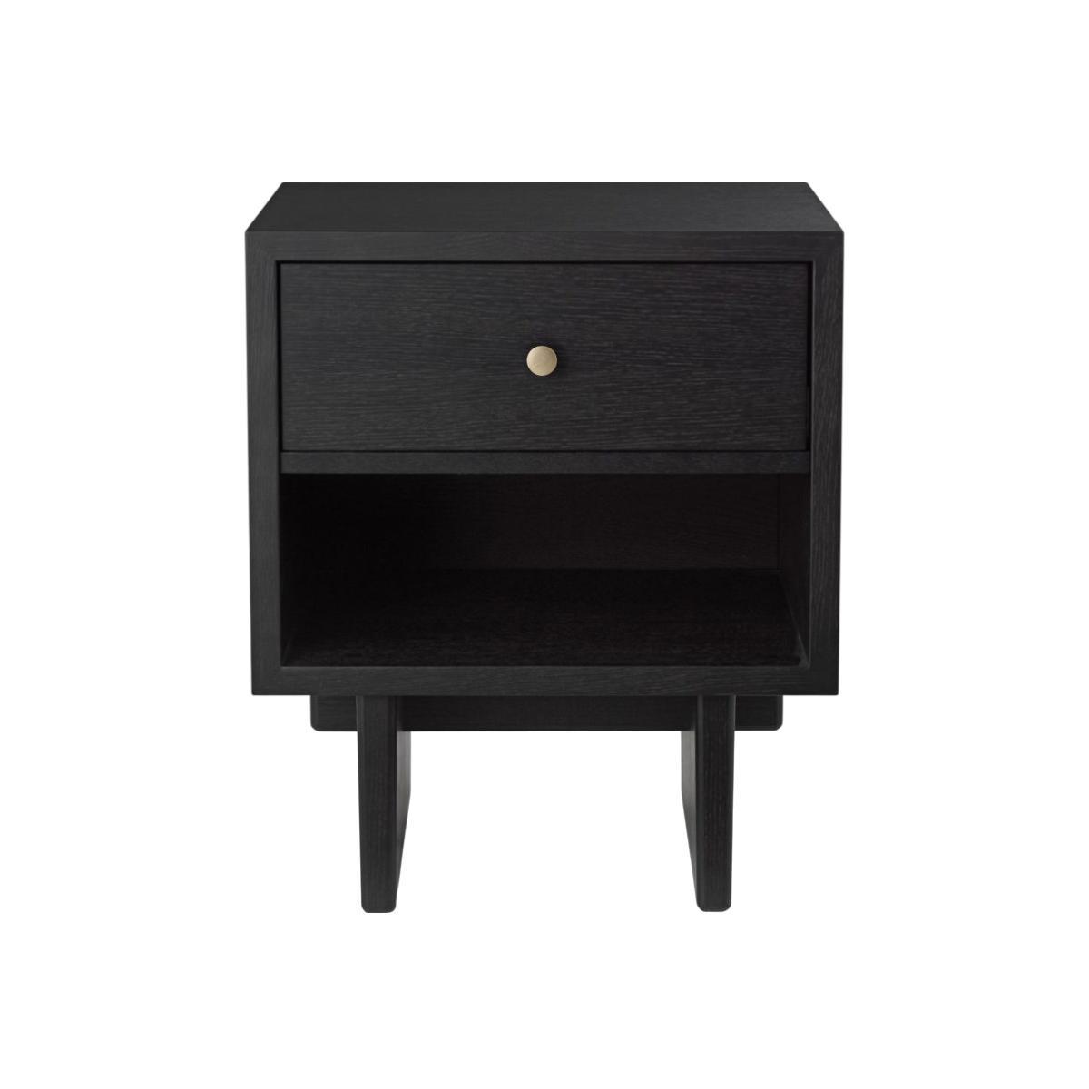 Danish design house Gubi continues to bridge the gap between eras with a new collection that stands the test of time. To design the Private collection, Danish studio Space Copenhagen was inspired by Japanese craftsmanship, as Charlotte Perriand and Hans J. Wegner did before them. The Private collection is an exercise in purity, symmetry, balance and restraint. Subtly refined, Private furniture combines purity and elegance. This furniture reflects the culture of Japanese design where form must meet function without decorative, unnecessary or superfluous additions. A sensitivity that’s also expressed in the choice of materials (rigorously selected oak veneer), through a keen eye for detail and the influence of craftsmanship. The simplicity of form emphasises the prowess of traditional cabinetmaking. Private uses artisanal techniques, such as grain-matched veneers to ensure a perfectly even surface. Private uses the art of Japanese joints. This thousand-year-old art of Japanese carpenters consists of assembling the different pieces of wood without glue or nails, by simple interlocking. Private furniture is all supported by two large vertical panels connected by a horizontal wooden beam. This feat of structural engineering elevates each part, and allows it to support enormous weight, while still giving a feeling of lightness. The furniture with its rigorous straight lines is embellished with gilded brass handles. These solid, timeless pieces of furniture are made to last. Space Copenhagen: “For the Private collection, we took inspiration from the beauty of vintage Japanese storage furniture. The defining detail for each piece is a Japanese wood joint. We went for a simple, strong, recognisable language, focused on high quality, beautiful materials and refined, elegant details. " The Private side table fits in just as well next to a sofa or bed. It has a drawer and an open storage space.