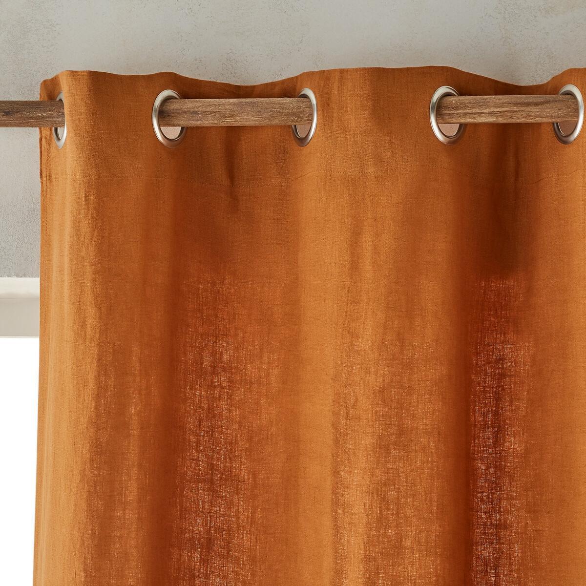 Private pre-washed linen curtain with eyelet header. Simple, natural and chic, pre-washed linen softens and takes on a subtle and highly attractive crinkled effect.. Pre-washed linen. A unique mix of authenticity and natural styling, linen elegantly filters the light.