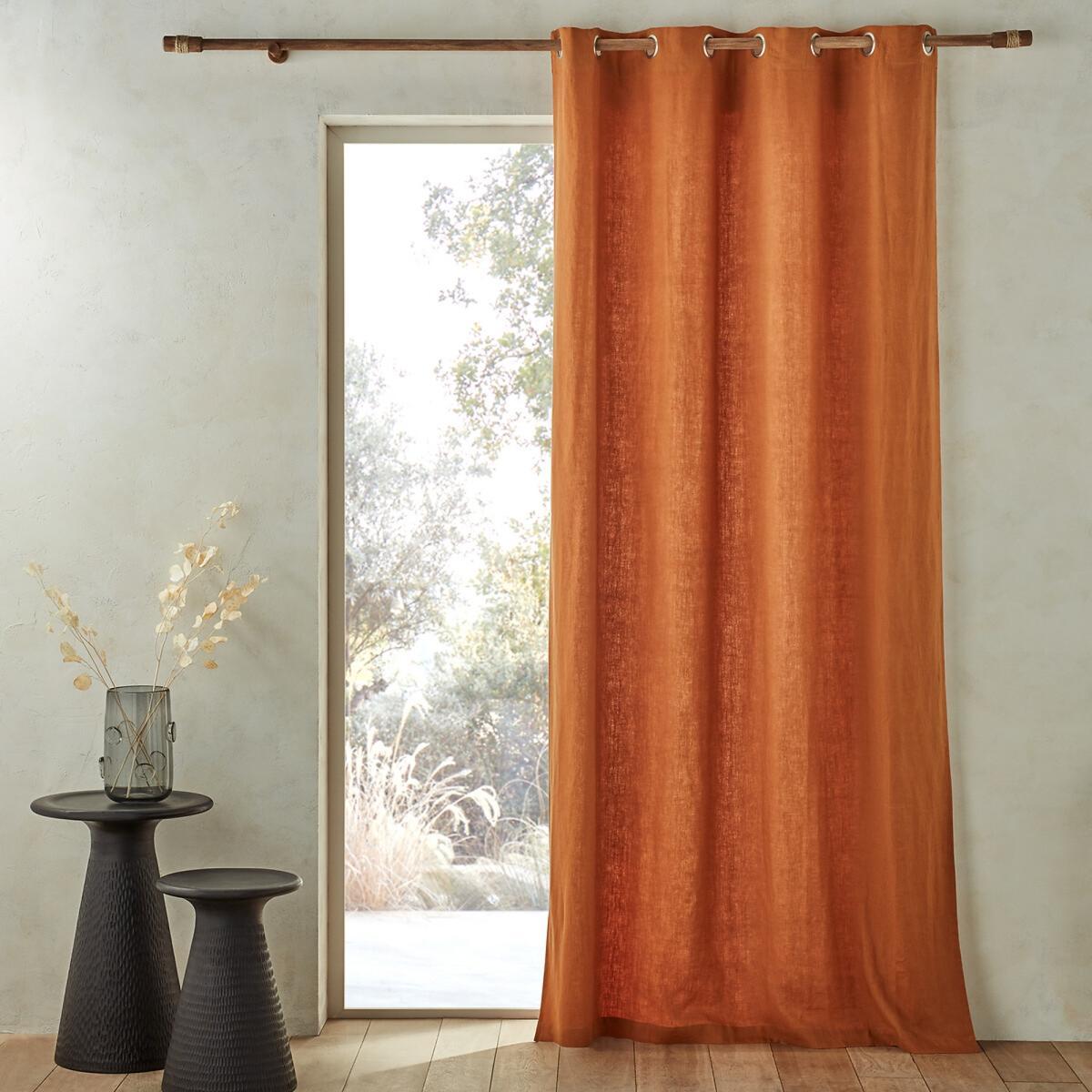 Private Single Lined Pre-Washed Linen Curtain with Eyelets