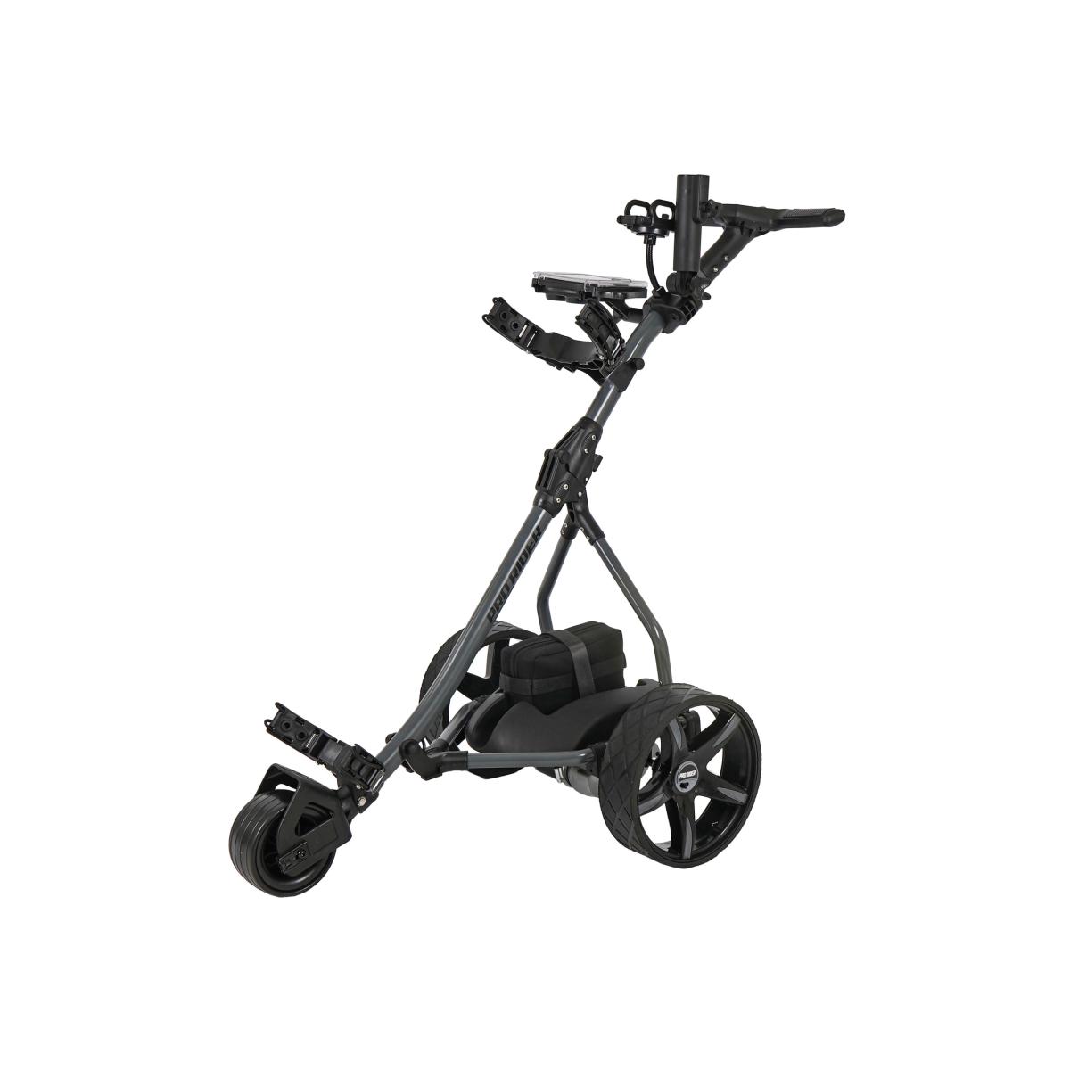 Powerful Motor Equipped with a 200W motor, this trolley can handle even the steepest slopes on the course, up to a 30-degree gradient. Long-Lasting Battery The 14.4V 16. Ah lithium battery lasts up to five times longer than traditional lead acid batteries and can be charged on or off the trolley. Lightweight Weighing only 11kg including the battery, this trolley is 40 lighter than our best-selling lead acid model. User-friendly Display The handlebar display shows the battery level and speed settings for easy monitoring. Speed and Distance Control Features a nine-speed control dial and a preset distance function, allowing you to send the trolley forward by 10m, 20m, or 30m. Memory Function A unique memory feature lets you pre-set your desired speed and pause or resume with the power button. Lightweight Frame Made from aluminium, the frame is easy to transport and manoeuvre, with a built-in hook and loop system to secure your cart bag. Adjustable Phone Holder Conveniently positioned for GPS golf apps and score tracking. Easy Folding One lever folding mechanism for hassle-free transportation. Removable Wheels Wheels can be easily removed for extra storage space at home or in small car trunks. Improved Grip Airless tyres with rubberised tread provide better grip on damp surfaces. Automatic Charger Comes with an automatic cut-off charger to prevent overcharging the battery. Included Accessories The trolley includes an accessory station, umbrella holder, scorecard holder, phone holder, rain cover, and a carry bag. Dimensions (Folded) 90cm (L) x 51cm (W) x 31cm (H)Dimensions (Unfolded) 92cm (L) x 52cm (W) x 96cm (H)Trolley weight without battery 9.1kg Battery weight 1.9kg Trolley weight with battery 11kg.