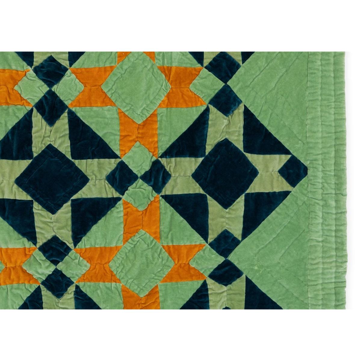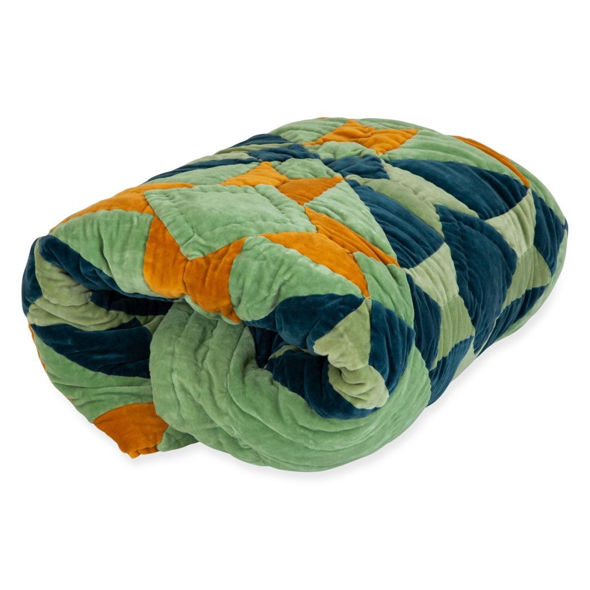 These stunning, 100% cotton velvet patchwork quilts are handmade from the softest cotton velvet, and feature beautiful tones of olive, navy and mustard.