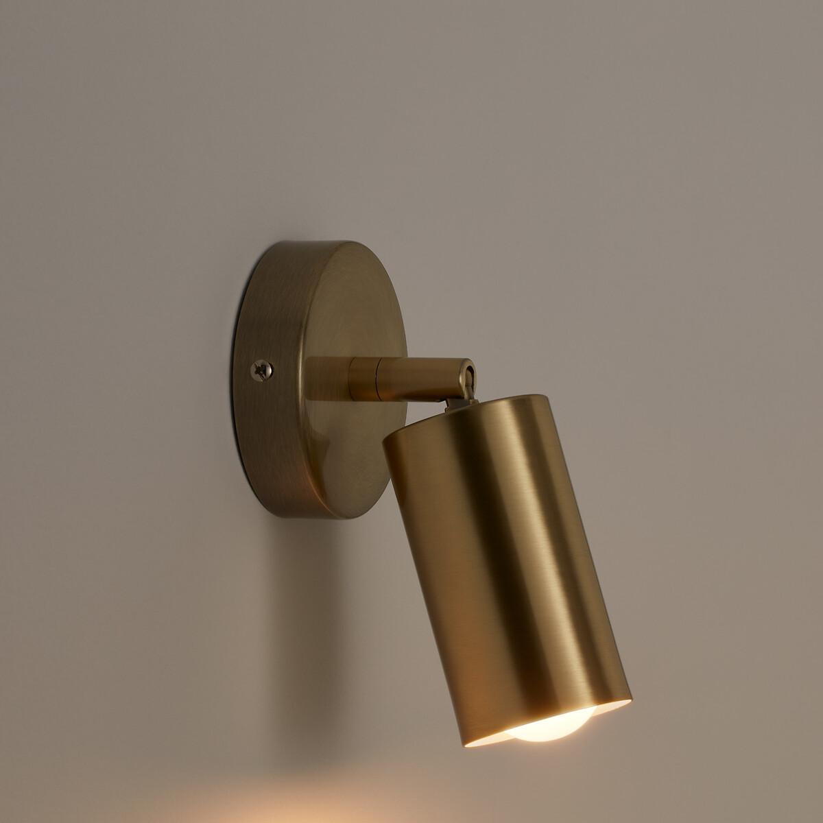 Contemporary design, graphic line... Projoto is ideal to be placed in a living room, bedroom or hallway. In addition to providing targeted lighting, it is a decorative element that gives character to your room.. Product Details • Adjustable iron wall light/spotlight with epoxy or brass paint finish • E27 socket for LED bulb of 8W max (not included)Dimensions • Length: 10cm • Height: 18.8cm • Depth: 10cm • Spotlight: diameter 6cm. Dimensions and weight of parcel1 parcel • L12 x H20.5 x D12cm. 0.4kg.