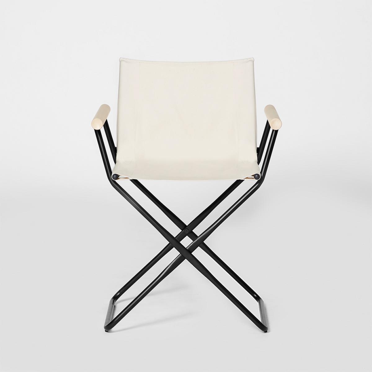 Conceptualised by British designer Samuel Wilkinson exclusively for The Conran Shop, the Prop Chair in an ecru hue is an innovative reinterpretation of classic director's chairs. Named Prop after its distinctive propeller-shaped, tubular steel, powder-coated frame, the chair is expertly crafted in the Treviso region of Italy. Showcasing subtly detailed maple wood arms, the chair has been specially engineered to remove the visible support struts common in director style chairs. Accented with a 100% cotton weatherproof fabric seat in an ecru hue, the Prop Chair will make a refined addition to any indoor and outdoor space. Incredibly compact and easy to store, this chair can simply be folded away when not in use. Continuously working in the pursuit of fresh and innovative design, Samuel Wilkinson utilises his vast understanding of materials and their capabilities to achieve an exquisite finish in every piece that he creates. Care instructions: Dust with a soft brush and rinse with clear water at low pressure without the use of chemical products.