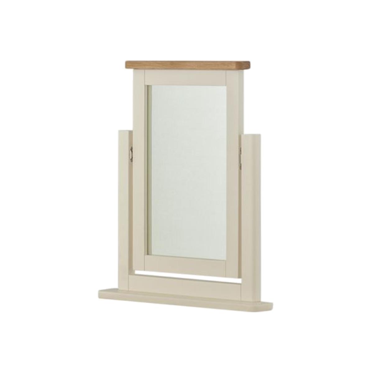 This modern bedroom furniture collection constructed from Oak and Oak veneer. Ideal for traditional or contemporary bedrooms this dressing table mirror will make a welcome addition to your dressing table. Oak and Oak veneer Cream painted finish Dimensions: 53cm (W) x 7cm (D) x 59cm (H)
