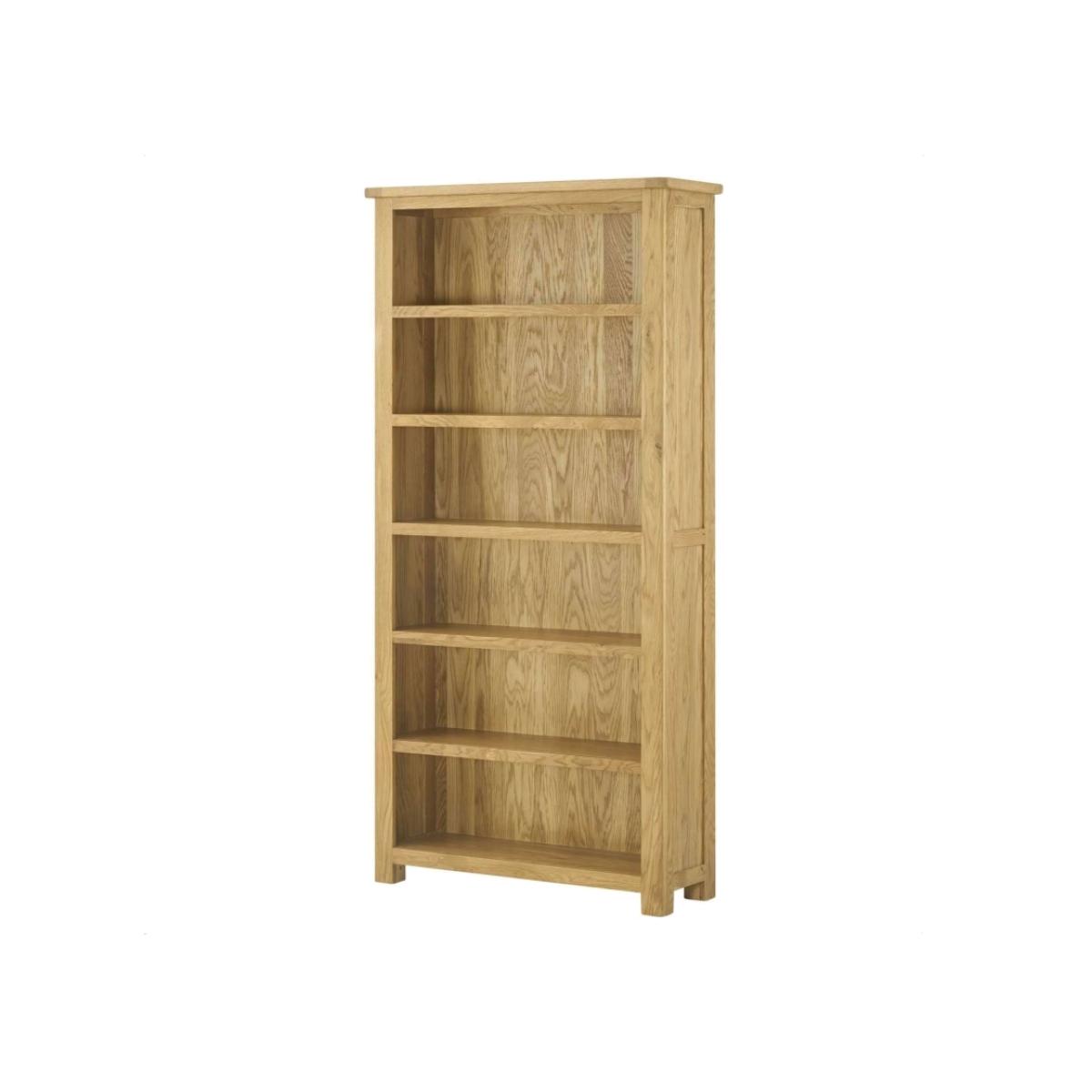 Portland Oak Large Bookcase will add a majestic touch to your home, and will be a major focal point in your bedroom or dining room. This Bookcase has constructed from solid oak with n satin lacquered finish tops that will add natural style to your dining room. Portland Bookcase has 5 open spacious and sturdy shelves, ideal for storing all of your favourite books, ornaments or pictures. Features Solid Oak and Oak Veneer Top 5 Open Shelf Dimensions W 90cm D 30cm H 180cm
