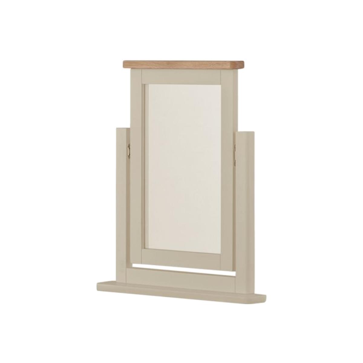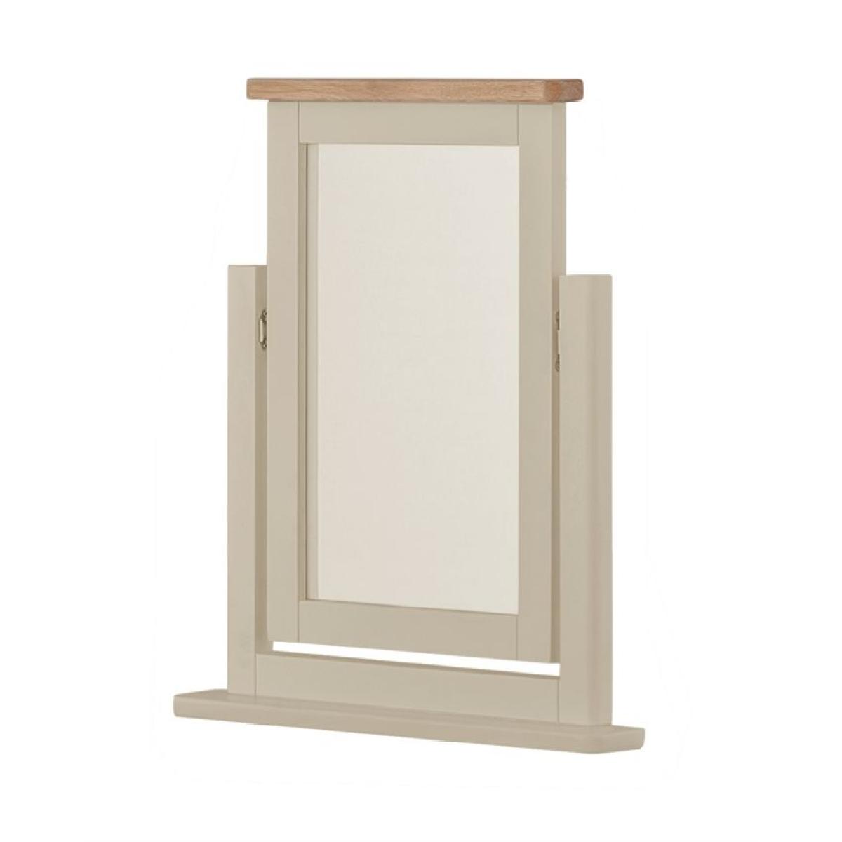 This modern bedroom furniture collection constructed from Oak and Oak veneer. Ideal for traditional or contemporary bedrooms this dressing table mirror will make a addition to your dressing table. Oak and Oak veneer Pebble colour painted finish Dimensions: 53cm (W) x 7cm (D) x 59cm (H) Delivered fully assembled