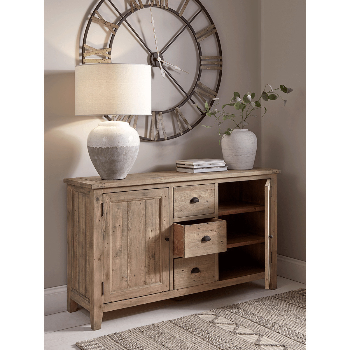 I love this sideboard for its timeless, rustic charm, making it versatile for both traditional and casual modern interiors. The Provence piece works particularly well in country-style or coastal schemes, where its natural wood finish can be complemented with glazed ceramics or woven baskets for added texture. Practical styling tips include using the top surface for decorative lamps or plants-this helps soften the overall look-whilst keeping clutter to a minimum in the drawers and cupboards for a clean, organised space. Its neutral tones and simple design also make it an excellent anchor piece in living rooms, dining areas, or hallways, creating a warm, welcoming feel without overpowering other elements in the room.