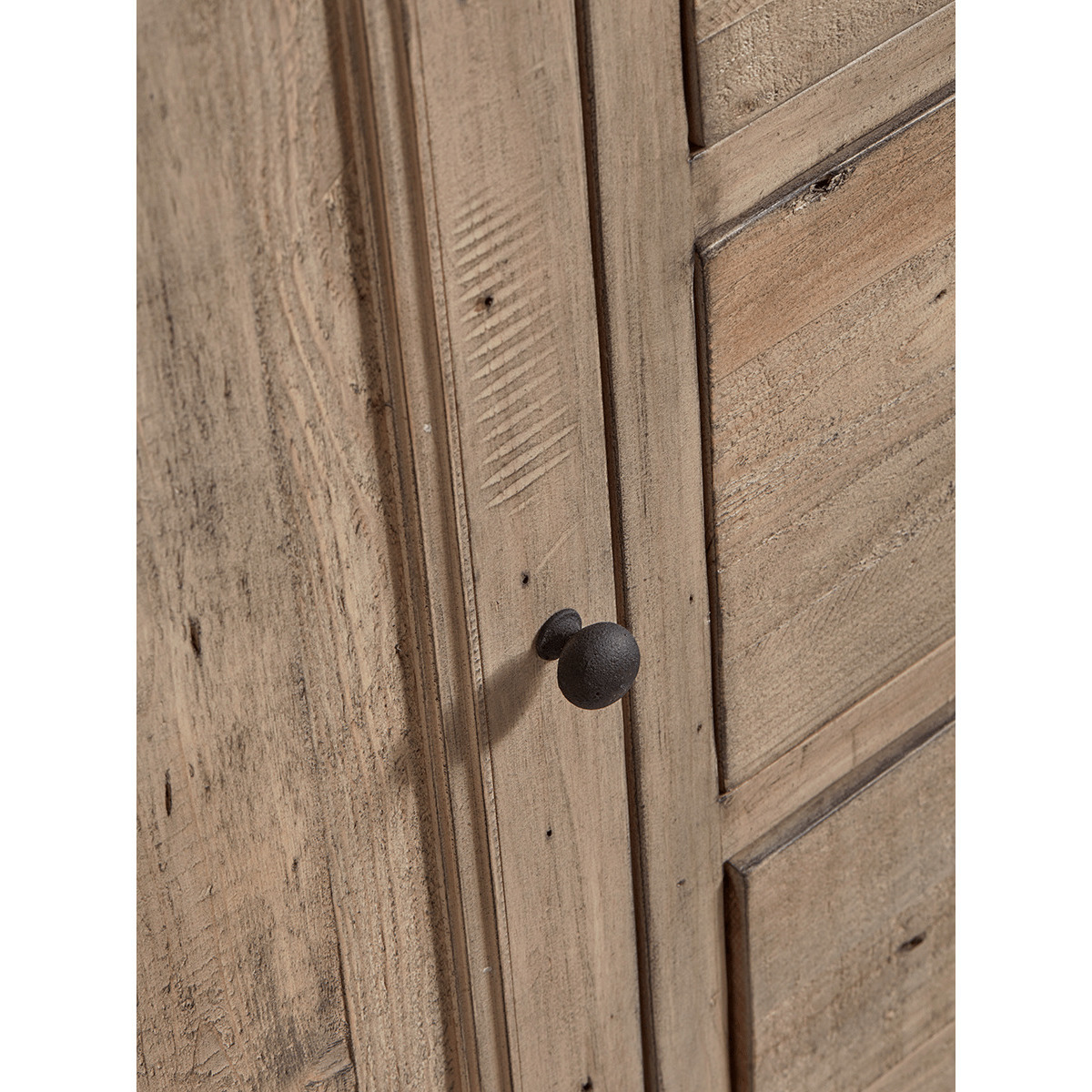 Add a striking centrepiece and boost storage in your space with our rustic, reclaimed wood sideboard. Each piece features three large drawers to the centre, each with a black cup handle, and a cupboard to either side.