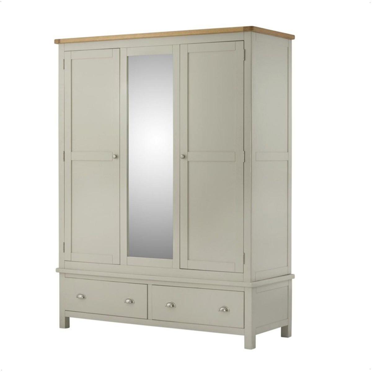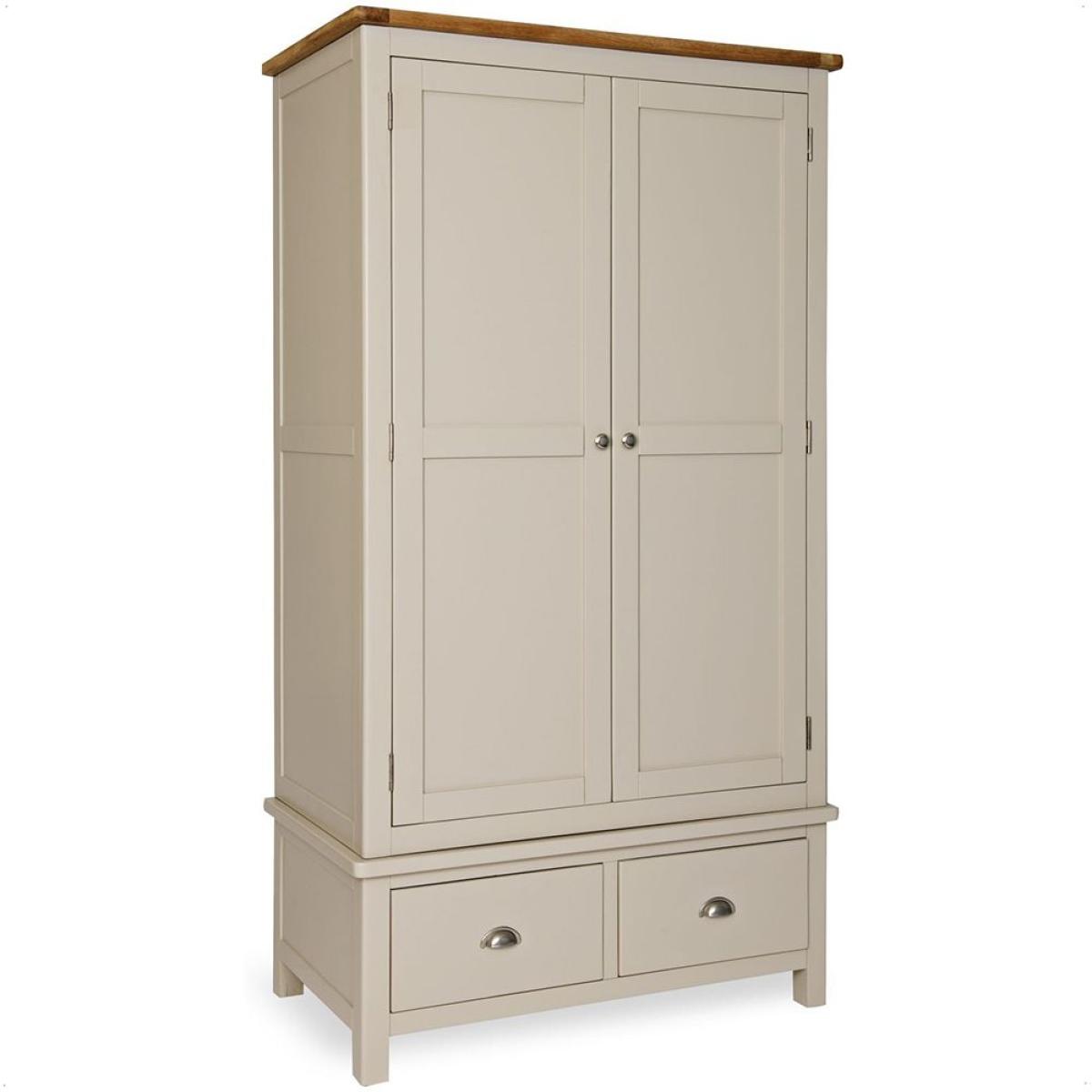 This modern bedroom furniture collection constructed from Oak and Oak veneered tops with a pine and man-made board carcass, finished in a stone colour paint finish with contemporary brushed nickel D-cup handles and round knobs. Ideal for traditional or contemporary bedrooms, there is a wardrobe to suit all setups, available either as a full height hanging robe or as a wardrobe and roomy drawer combination. These wardrobes will make a welcome addition in your bedroom. Dimensions2 Door Full Height Wardrobe - 100cm W x 57cm D x 190cm HGents Wardrobe - 100cm W x 57cm D x 190cm HTriple Wardrobe - 147cm W x 57cm D x 190cm H Assembly required All screens vary in colour reproduction and whilst every effort has been made to display the colour as accurately as possible it is for guidance only.