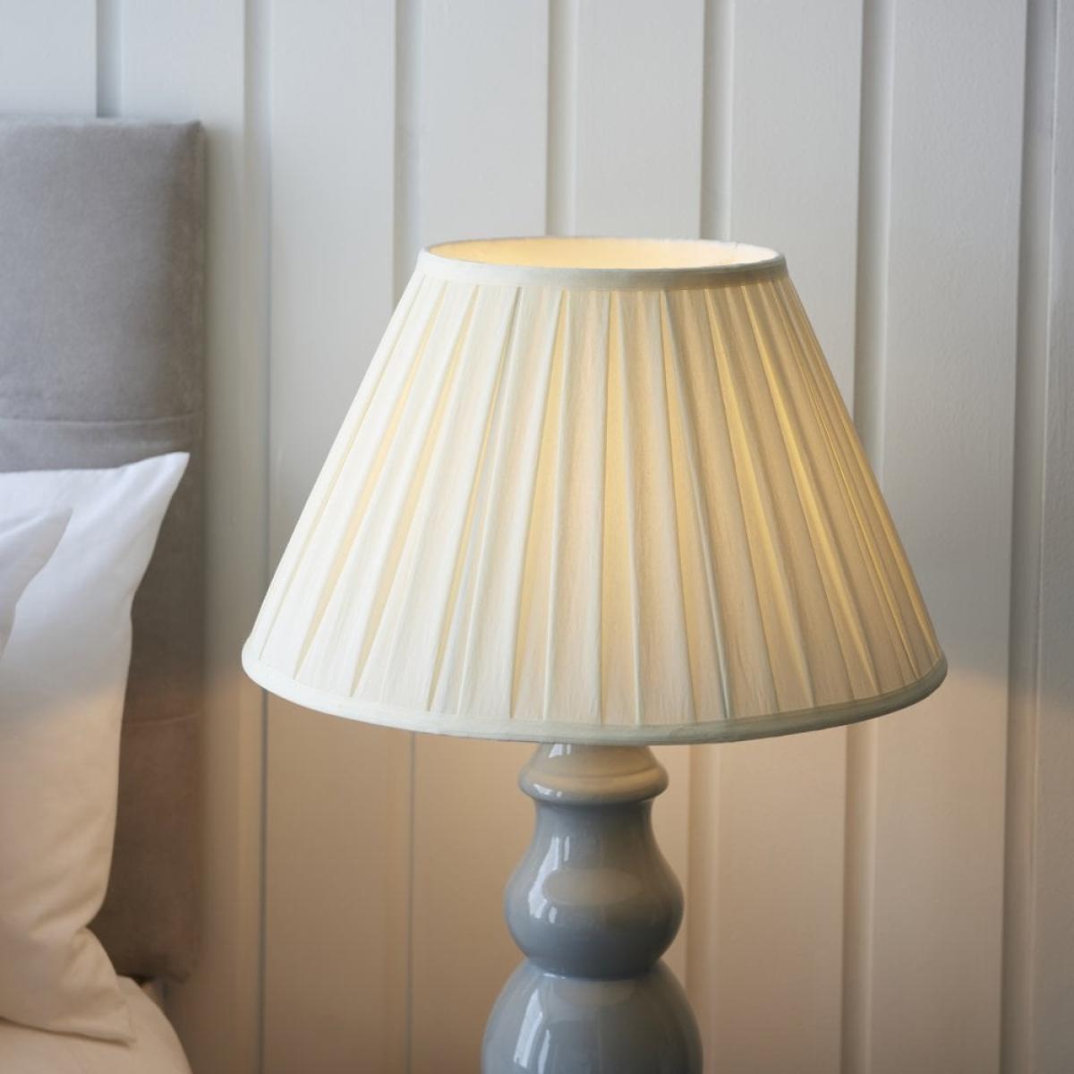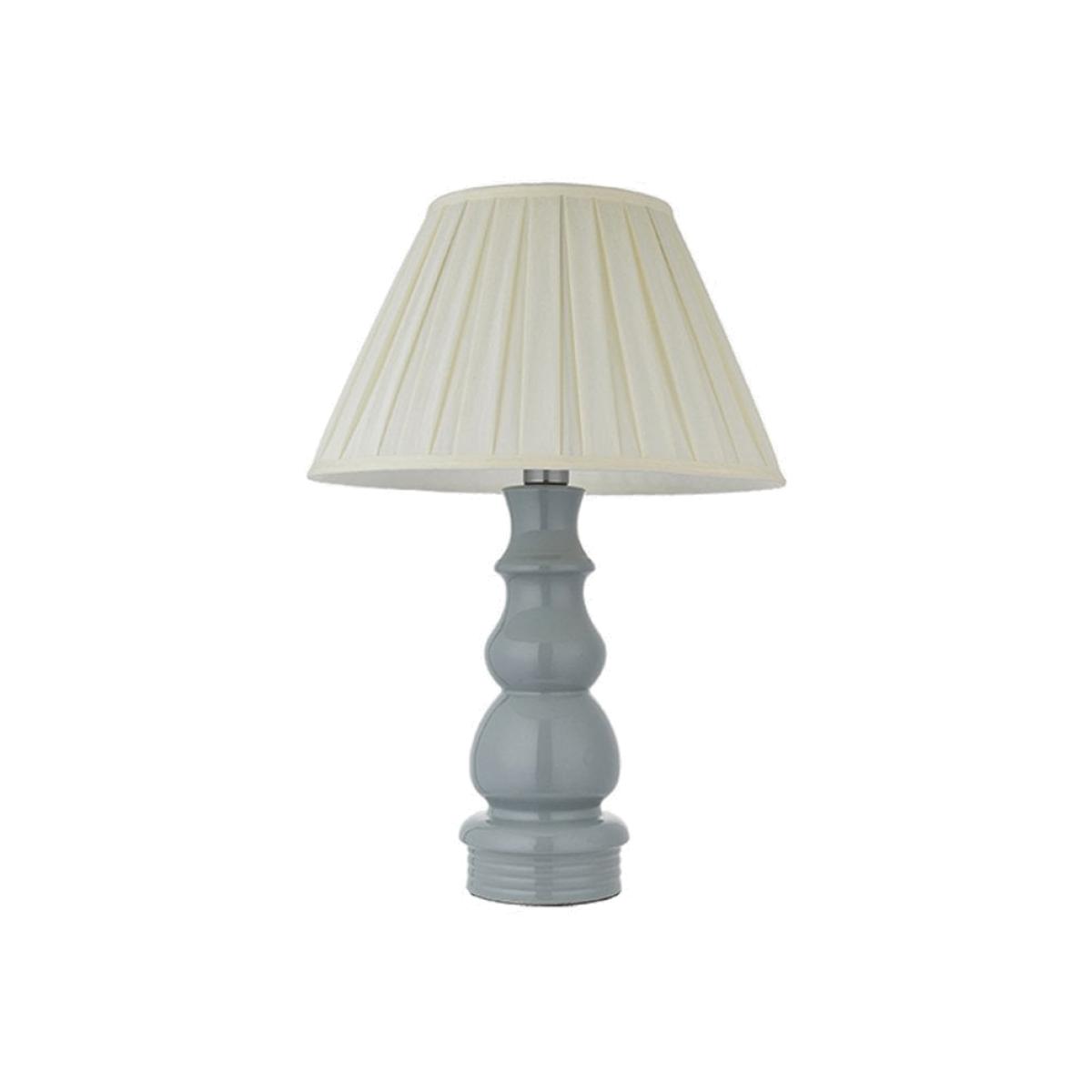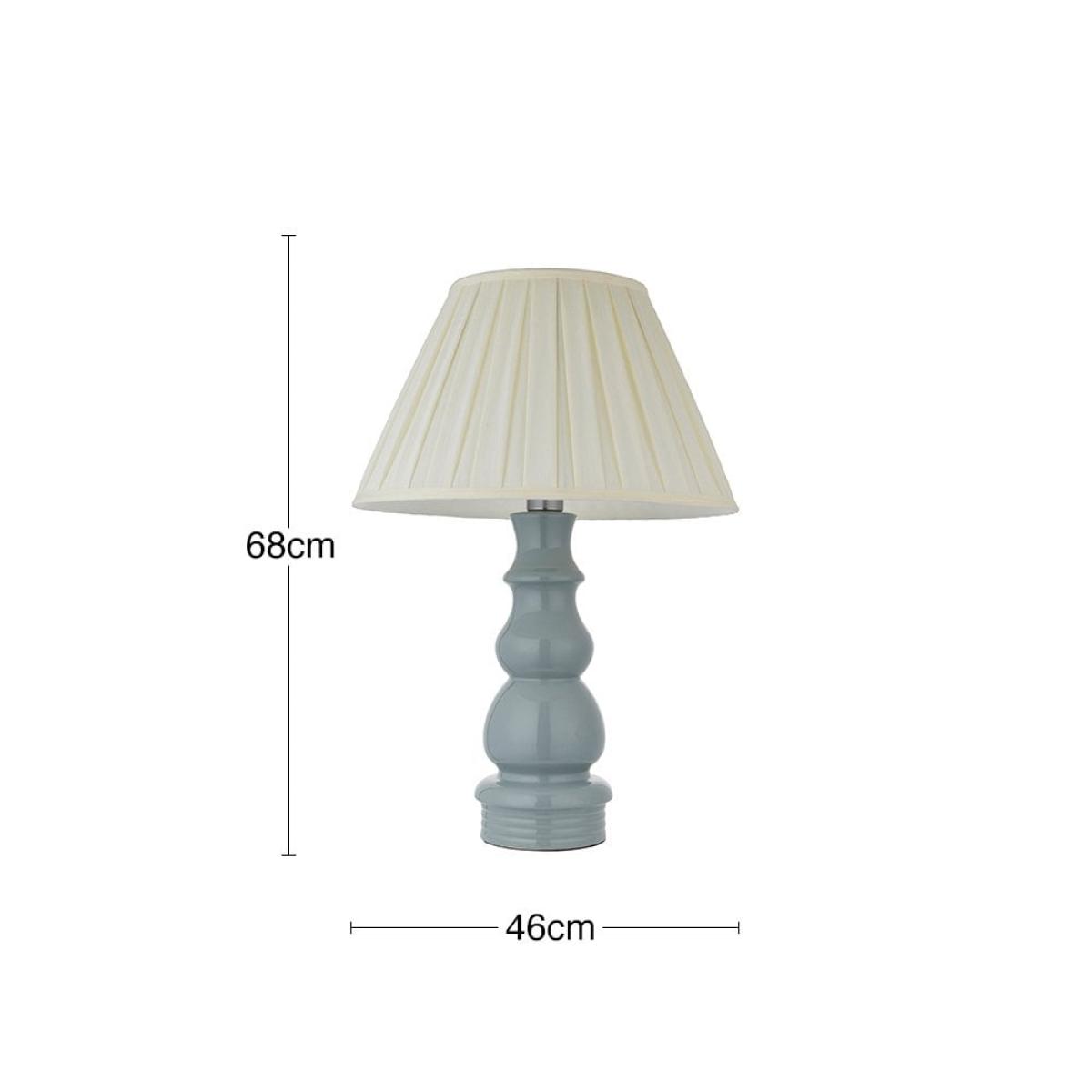 Country French has never been so elegant. Create a warm, inviting space in your home with the Provence Table Lamp. Finished with a glossy blue-grey glaze, this lamp comes with a matching handmade shade where the folds and intricate details of this patterned table lamp are sure to add style and elegance to any room.