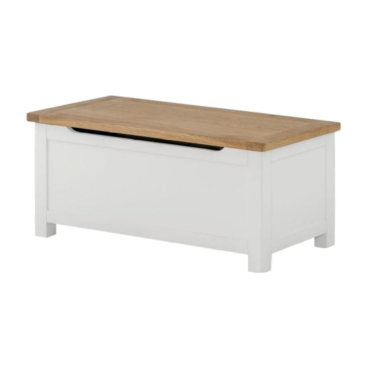 This modern bedroom furniture collection constructed from Oak and Oak veneered tops with a pine and man-made board carcass and finished in a crisp white colour paint finish. Ideal for traditional or contemporary bedrooms this roomy blanket chest will make a welcome addition, ideal for storing spare bedlinen until it is next required.