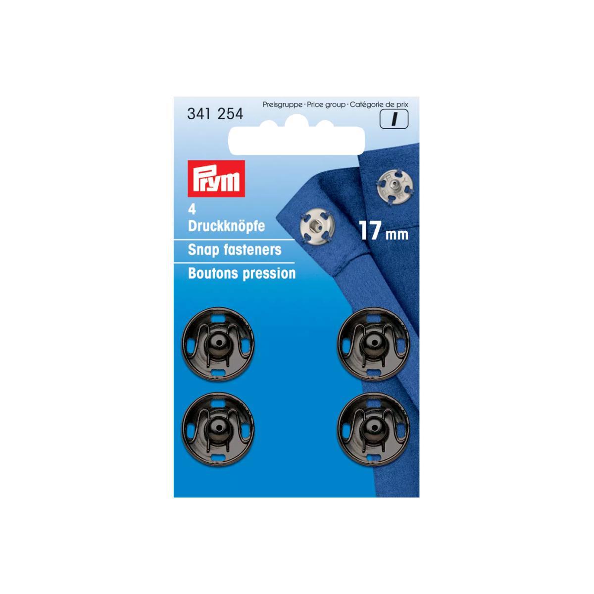 Prym Sew-On Metal Snap Fasteners, 17mm, Pack of 4, Black