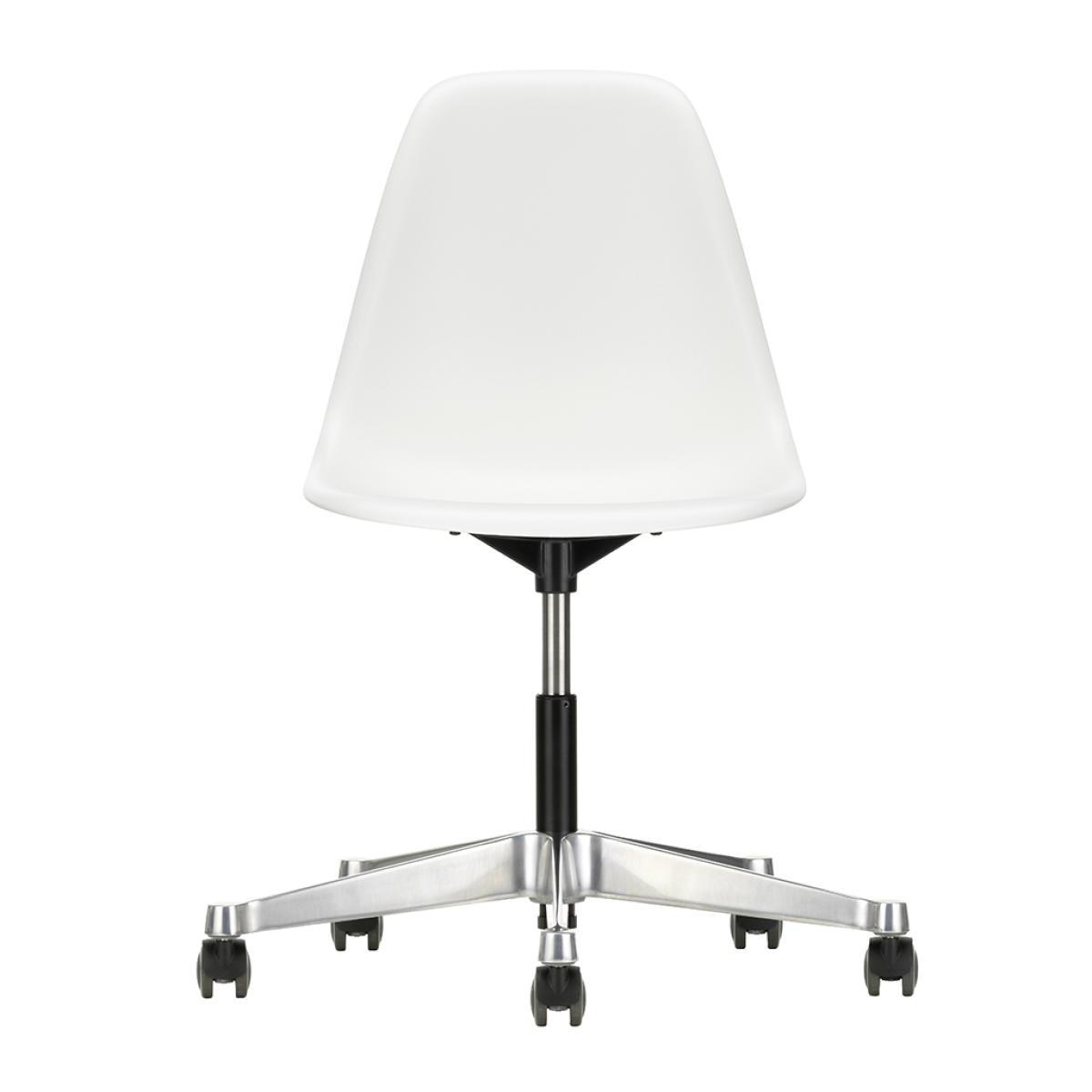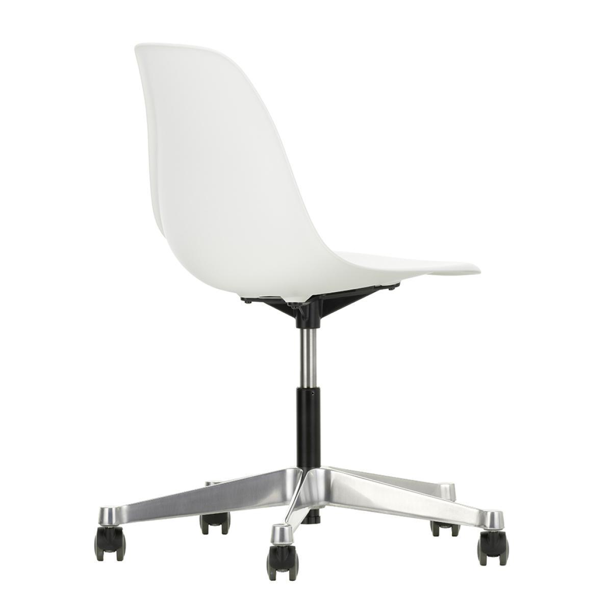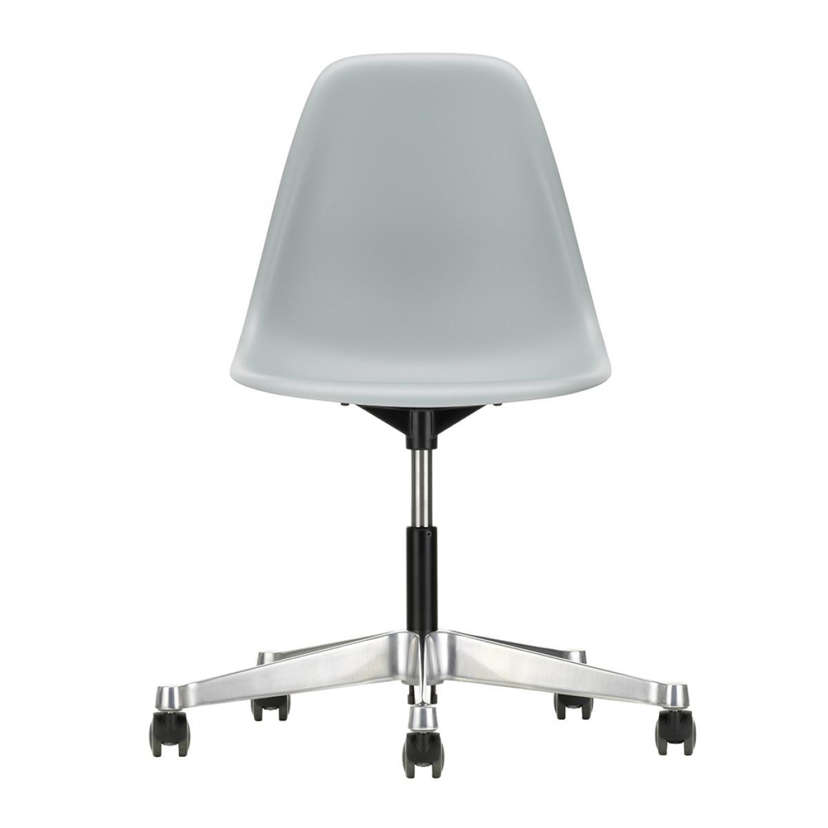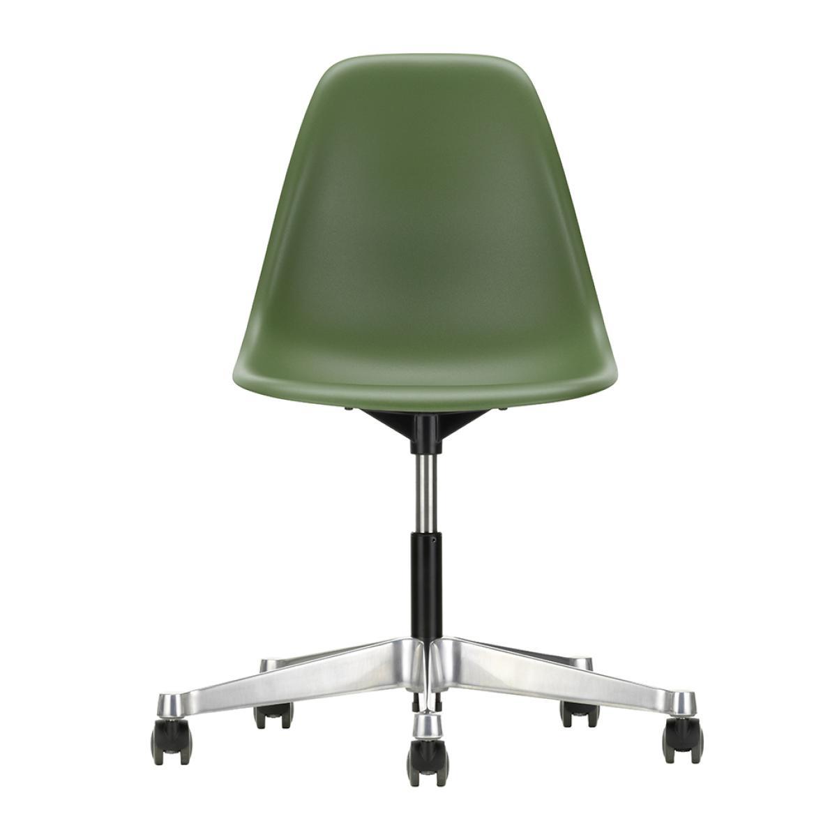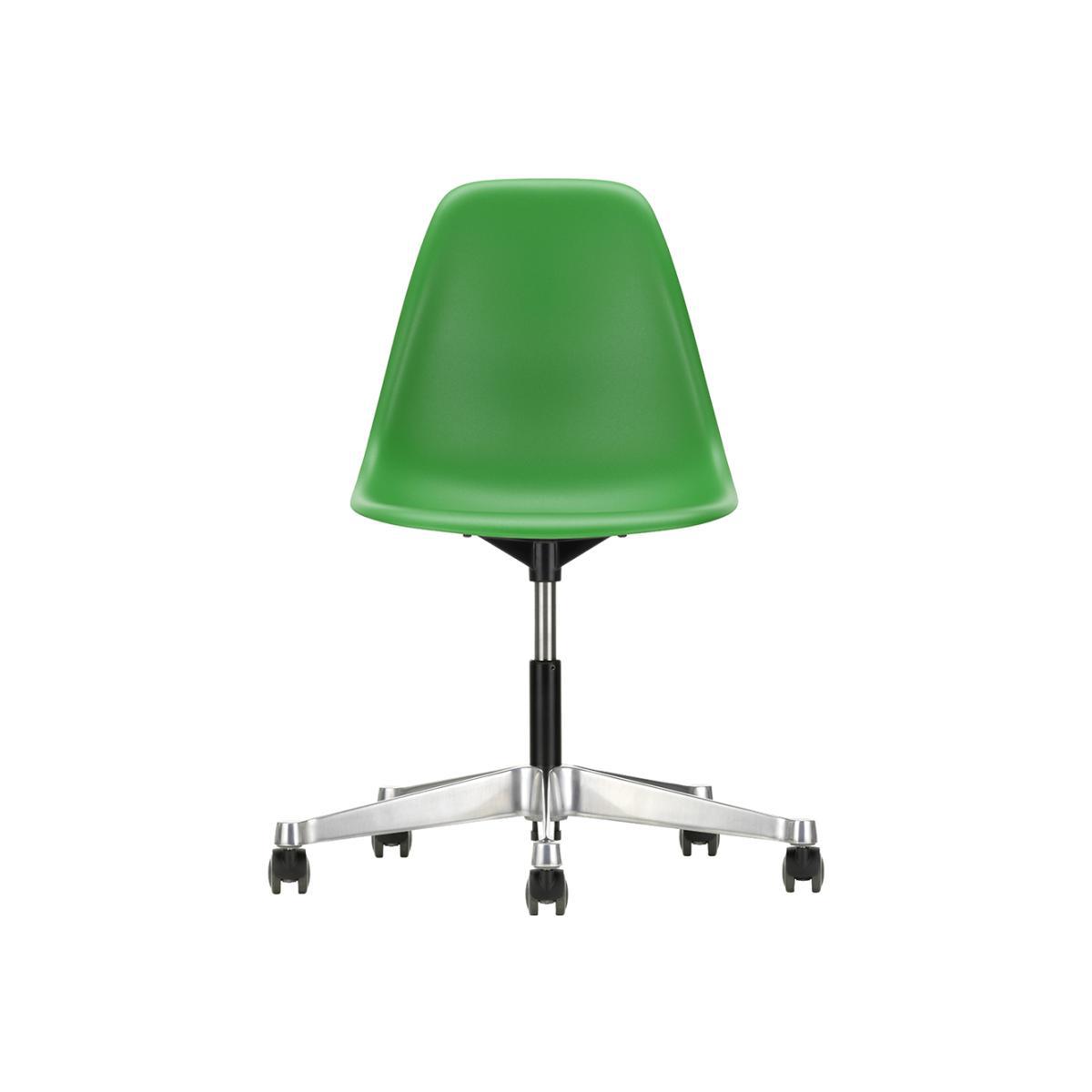 Designed in 1950 by iconic duo Charles and Ray Eames for Vitra, the PSCC Plastic Side Chair in green is an instantly recognisable design classic, featuring a refreshed colour palette for 2019, paying homage to the model's original colour history while acknowledging future aspirations. With an organically shaped, swivel-mounted seat shell with shock-absorbing suspension and continuous height adjustment, this vibrant chair ensures optimal comfort. Crafted from recyclable dyed-through polypropylene, the seat sits upon a polished aluminium base and five practical wheels. An elegant and distinctive design, the PSCC Plastic Side Chair is instantly recognisable as an authentic Eames piece and is crafted to exacting standards by prestigious collective Vitra.