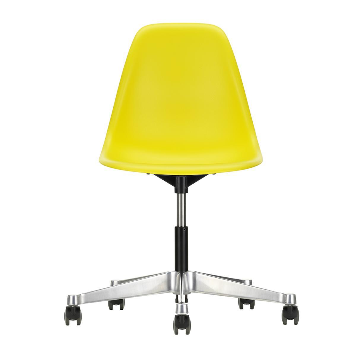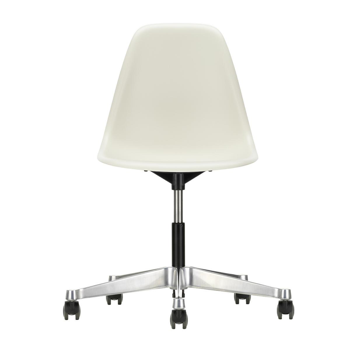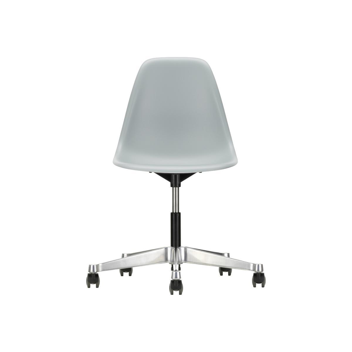 Designed in 1950 by iconic duo Charles and Ray Eames for Vitra, the PSCC Plastic Side Chair in a light grey hue is an instantly recognisable design classic, featuring a refreshed colour palette for 2019, paying homage to the model's original colour history while acknowledging future aspirations. With an organically shaped, swivel-mounted seat shell with shock-absorbing suspension and continuous height adjustment, this vibrant chair ensures optimal comfort. Crafted from recyclable dyed-through polypropylene, the seat sits upon a polished aluminium base and five practical wheels. An elegant and distinctive design, the PSCC Plastic Side Chair is instantly recognisable as an authentic Eames piece and is crafted to exacting standards by prestigious collective Vitra.