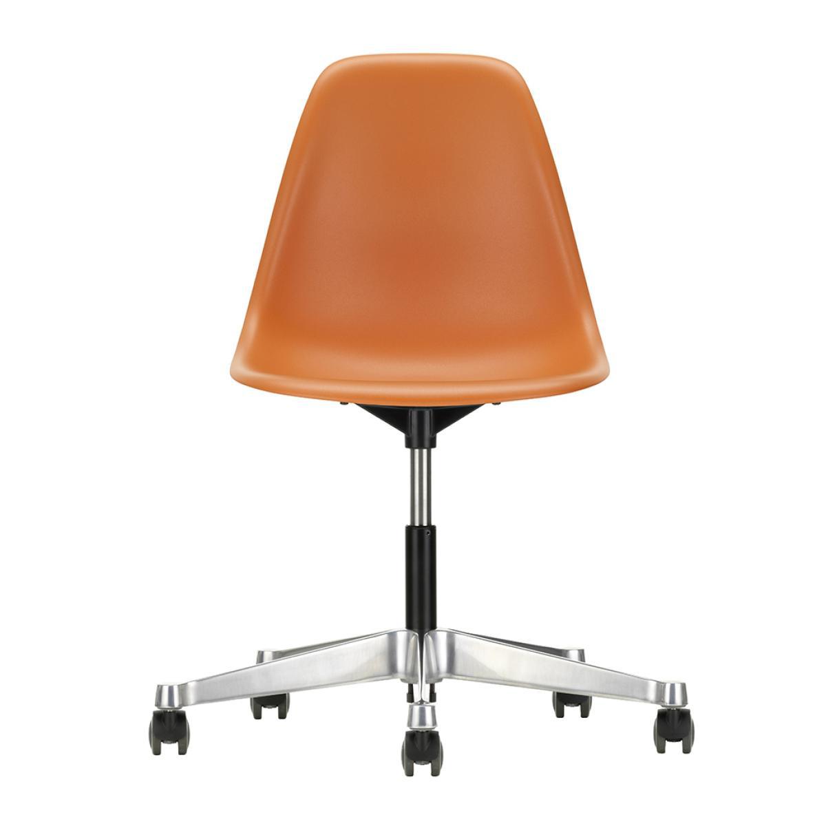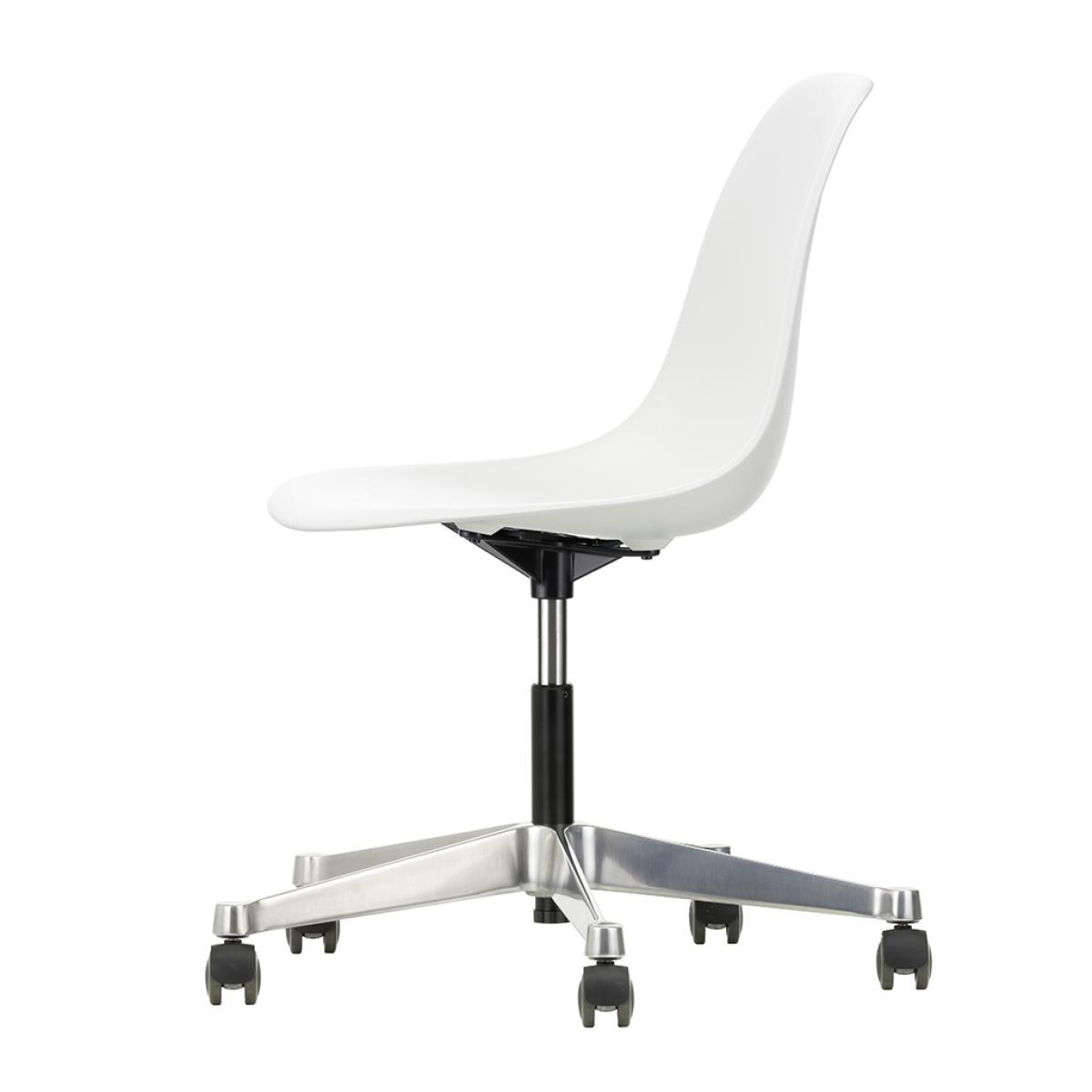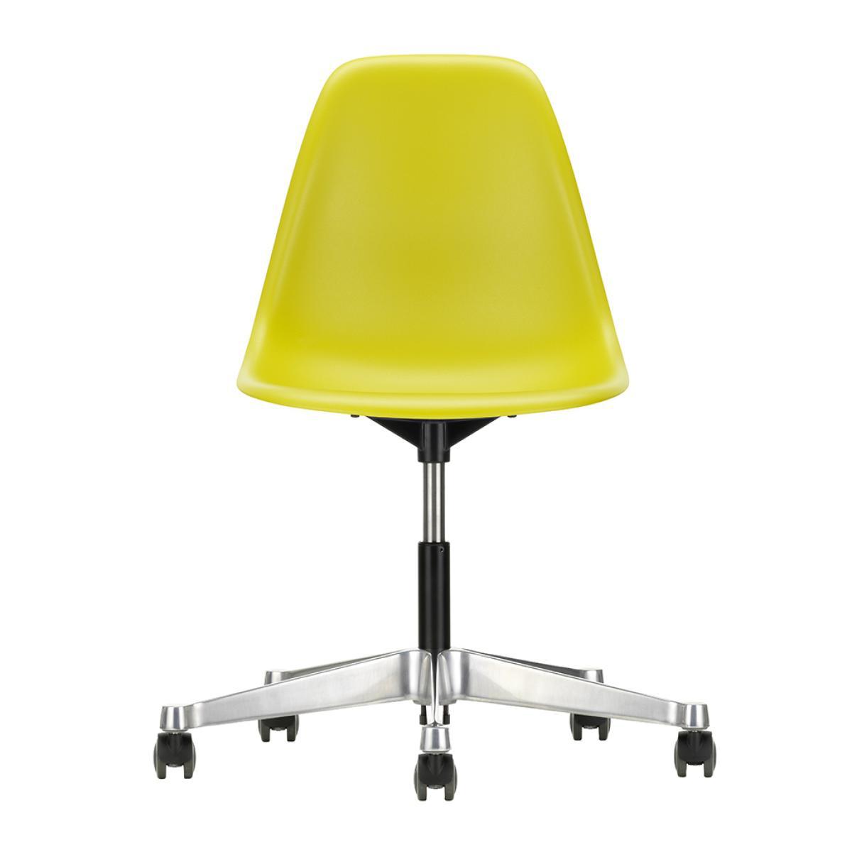 Designed in 1950 by iconic duo Charles and Ray Eames for Vitra, the PSCC Plastic Side Chair in a sea blue hue is an instantly recognisable design classic, featuring a refreshed colour palette for 2019, paying homage to the model's original colour history while acknowledging future aspirations. With an organically shaped, swivel-mounted seat shell with shock-absorbing suspension and continuous height adjustment, this vibrant chair ensures optimal comfort. Crafted from recyclable dyed-through polypropylene, the seat sits upon a polished aluminium base and five practical wheels. An elegant and distinctive design, the PSCC Plastic Side Chair is instantly recognisable as an authentic Eames piece and is crafted to exacting standards by prestigious collective Vitra.