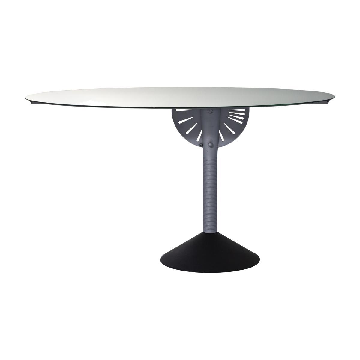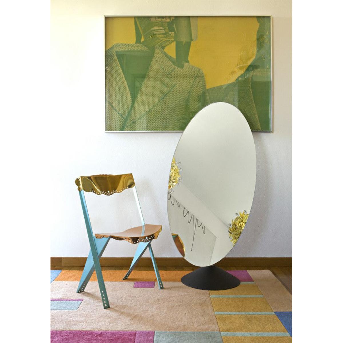 A collector ! This is the reissue of the incredible Psiche table / mirror, designed by Philippe Starck in 1989. Discovering an object designed by Philippe Starck, is like enter in a world of intense imagination, surprises and fabulous fantasy. Psiche is both a mirror and a table! In the position table the oval top (129 x 66 cm) get a mirror finish: the world is reflected, recreated. Thanks to a rotating mechanism under the top, you obtain easily a removable mirror.