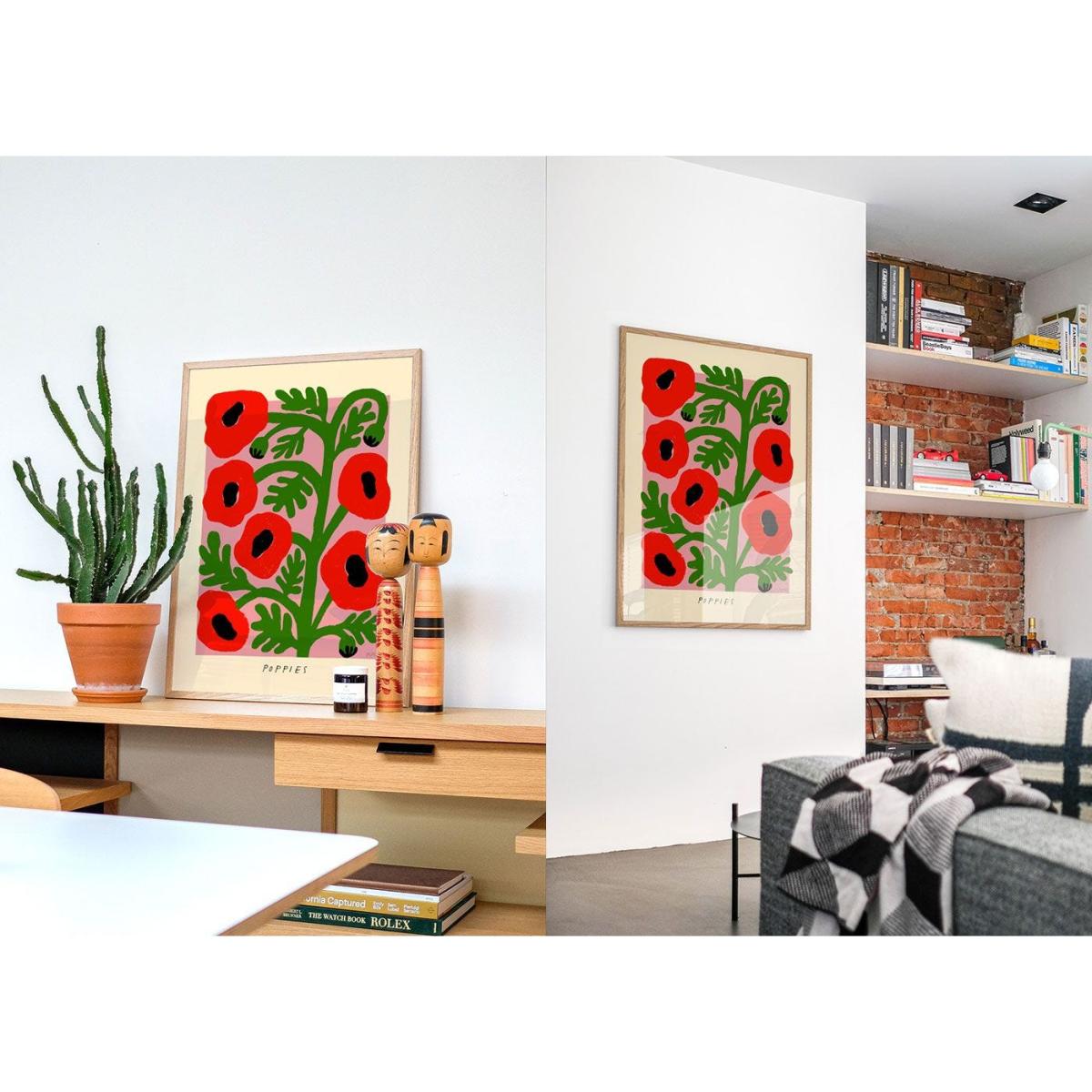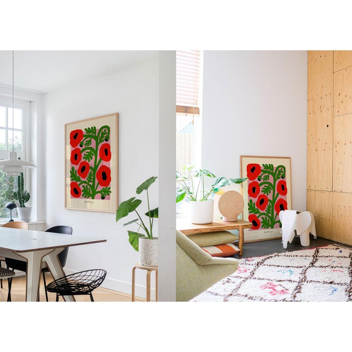 I love this Madelen print because it brings a fresh, modern take on floral art with its bold poppy design and vibrant colours. It's versatile and works well in both contemporary and eclectic interiors, adding a touch of vibrancy without overwhelming the space. For styling, I’d suggest pairing it with muted, neutral walls to make the colours pop, or mixing it into a gallery wall for a more dynamic display. It’s also ideal for brightening up a cosy corner or above a sideboard in living areas or kitchens, adding a cheerful splash of colour to everyday spaces. Simply framing it in a light wood or black frame can help it stand out, giving a clean, polished finish.