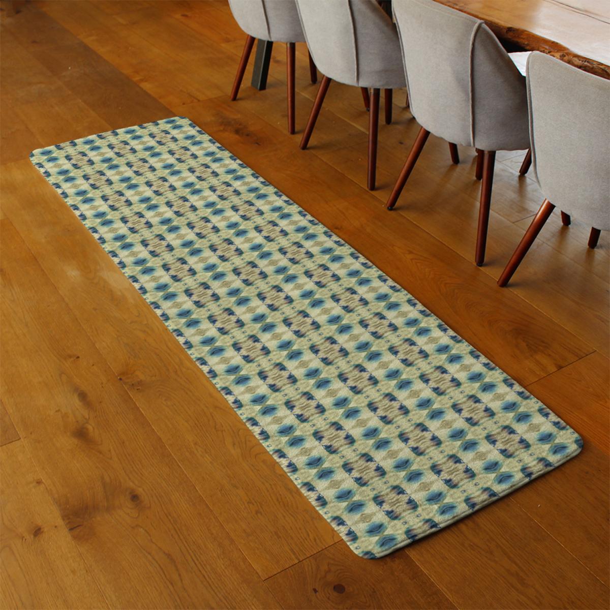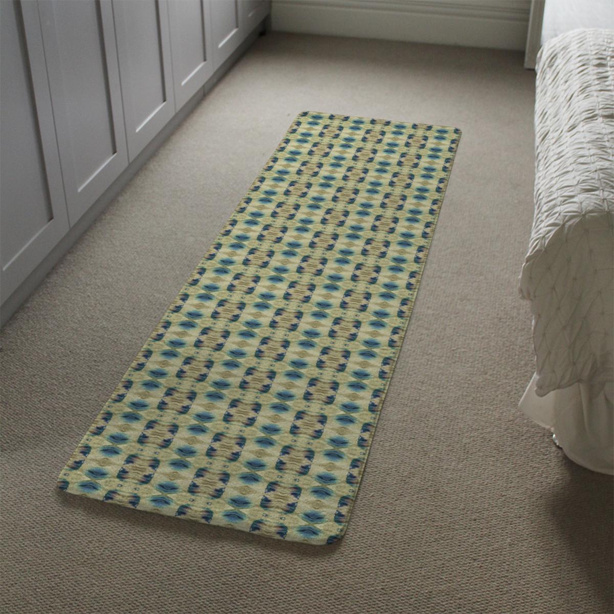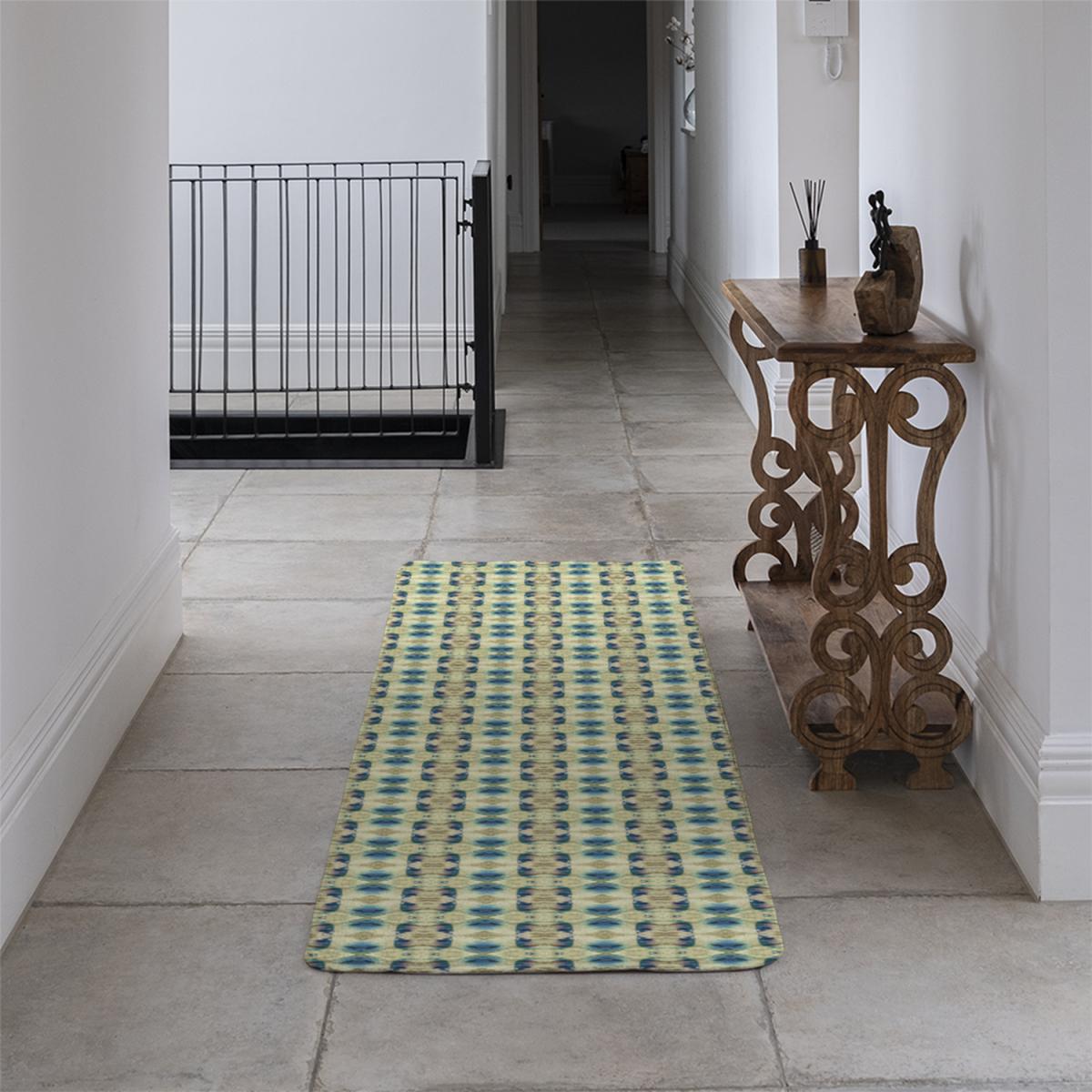 I love this runner because it adds a vibrant, modern touch to any hallway or narrow space with its bold, geometric pattern. Its green tones make it versatile for both contemporary and retro-inspired interiors, especially when paired with neutral furniture or as a statement piece against wooden or painted floors. For styling tips, consider layering with simple, solid-coloured accessories or adding in complementary decor that picks up the green hues to create a cohesive look. This rug also works well in kitchens or utility areas, bringing colour and pattern without overwhelming the space. Its length makes it practical for guiding the eye down a corridor while providing a soft surface underfoot.