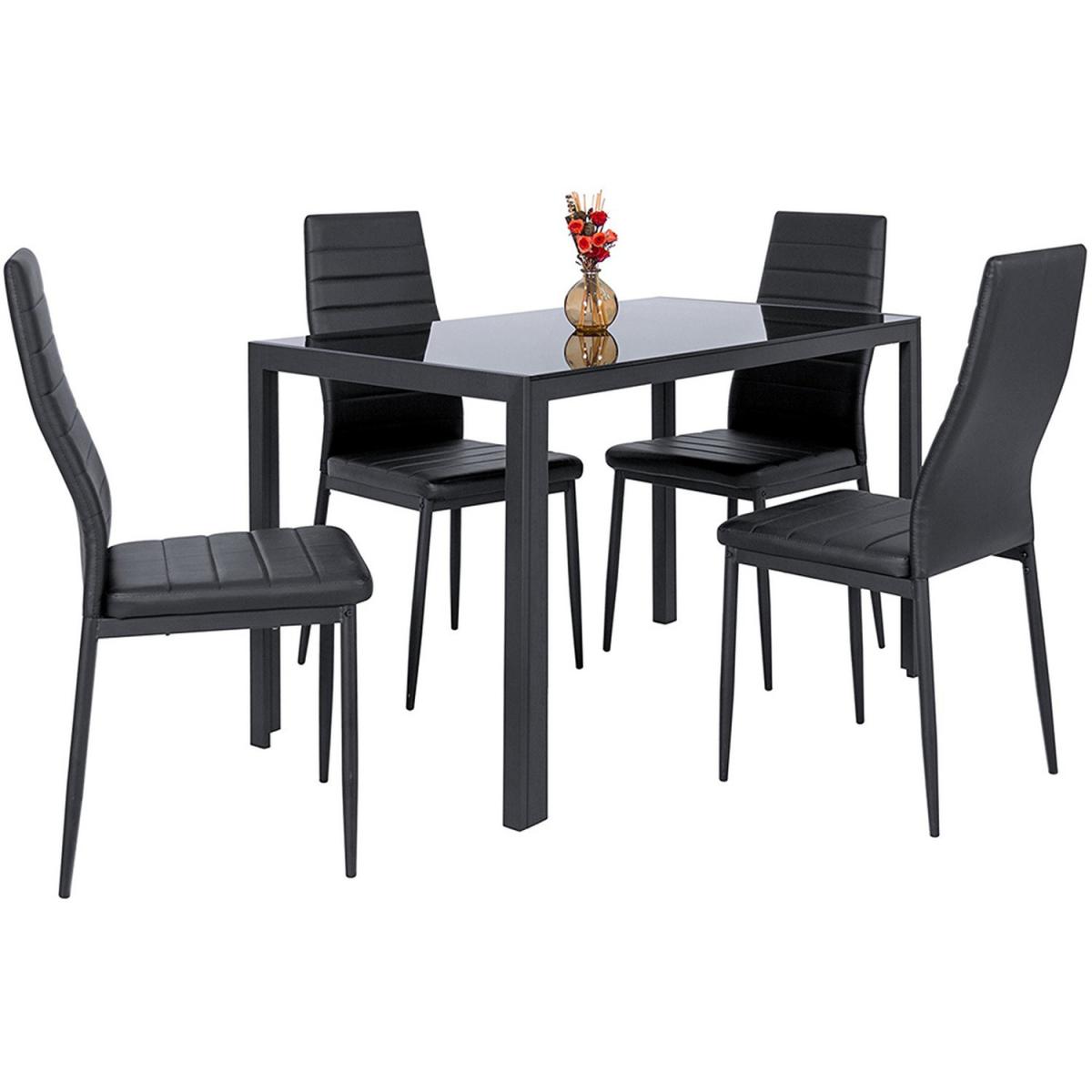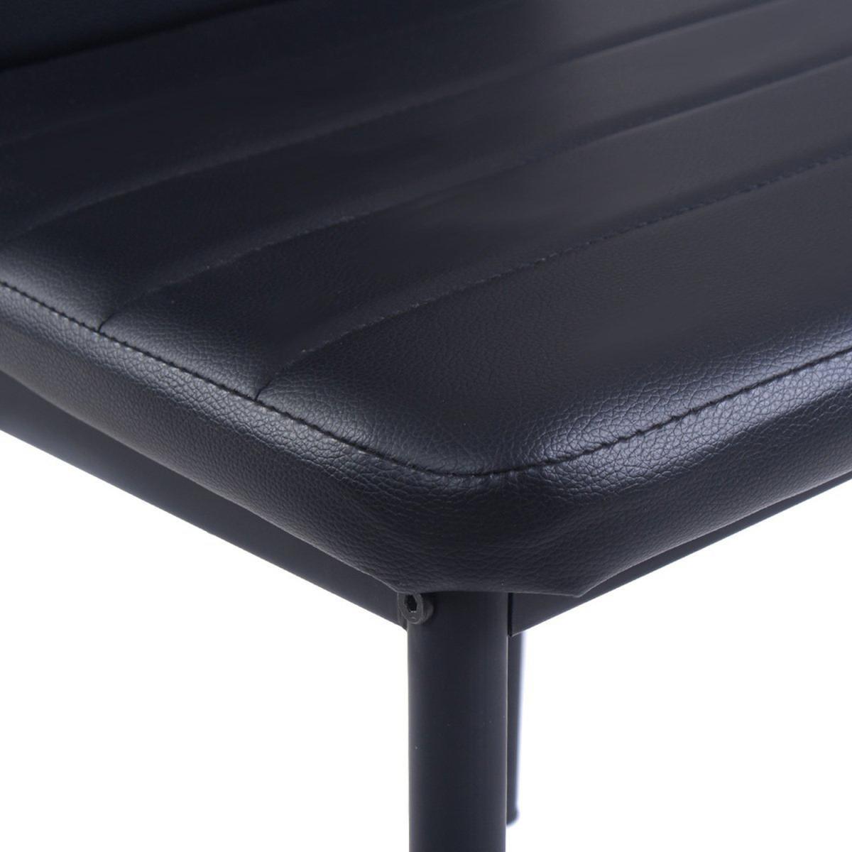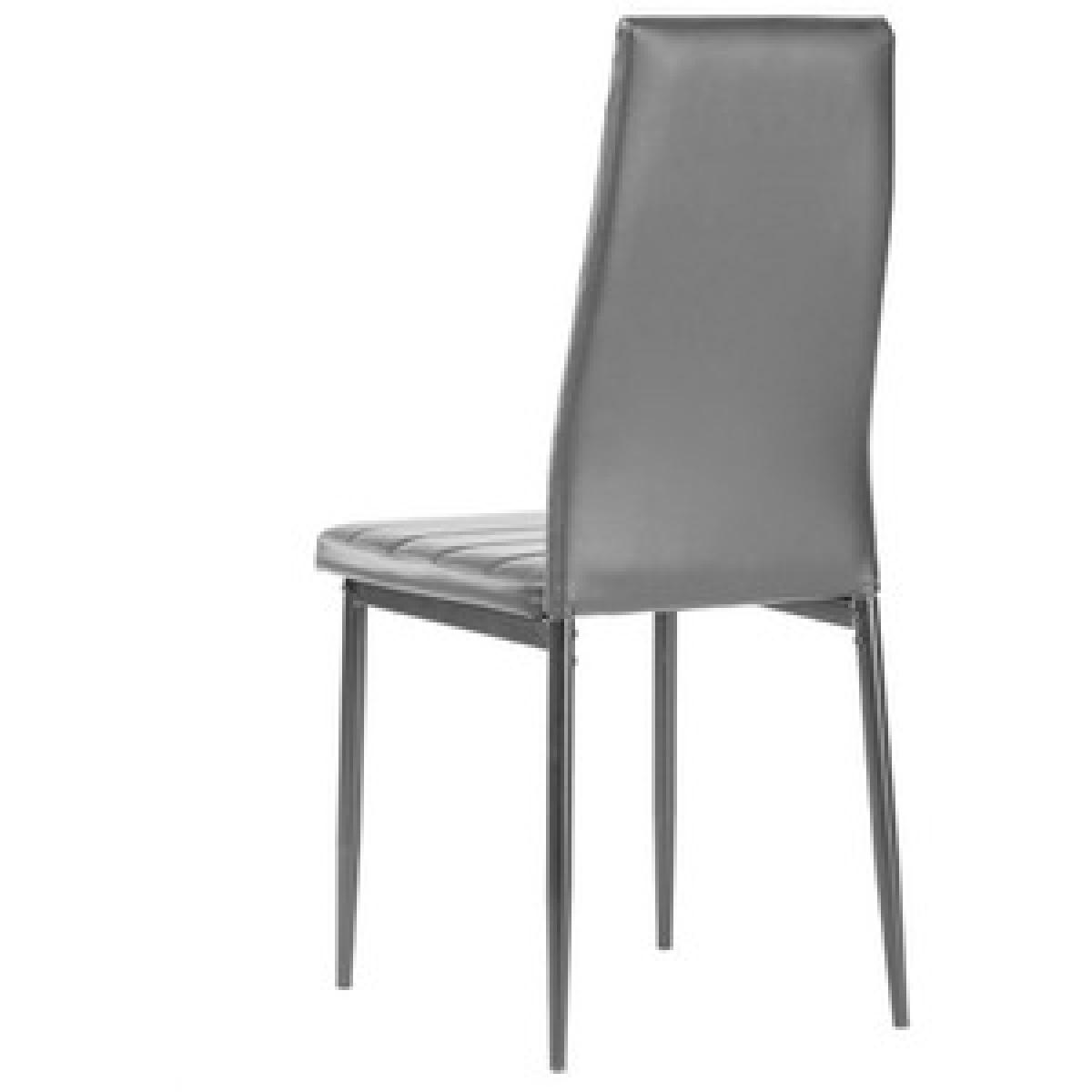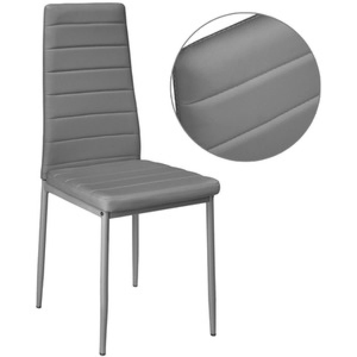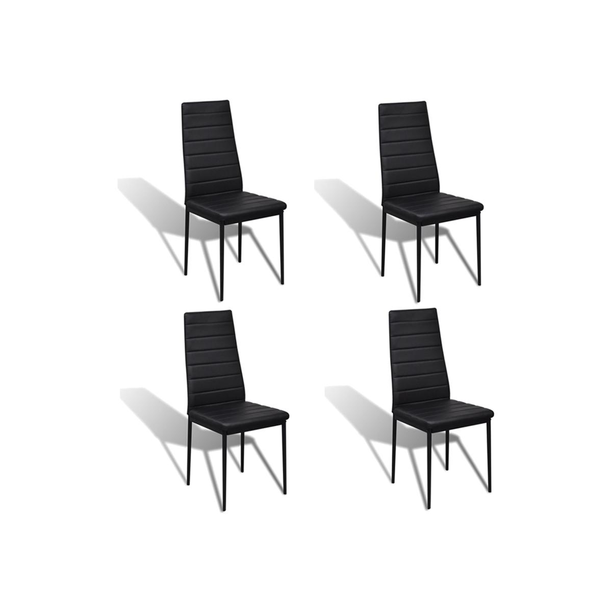 With their minimalist contemporary silhouette, these dining chairs are a must-have addition to your dining room. Built on a metal frame, they feature four tapered legs and a tall, armless back. The back slightly curves to provide you and your family a hint of lumbar support. Upholstered in faux leather and filled with foam, these chairs offer an inviting look and feel. Channel tufting adorns the back cushion for retro appeal. These dining chairs are sold in sets of four.