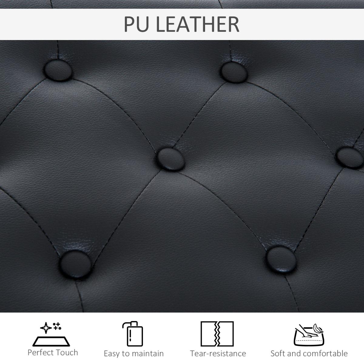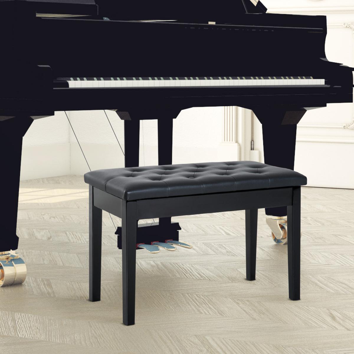 PU Leather Piano Bench with Storage Makeup Dressing Stool - Black