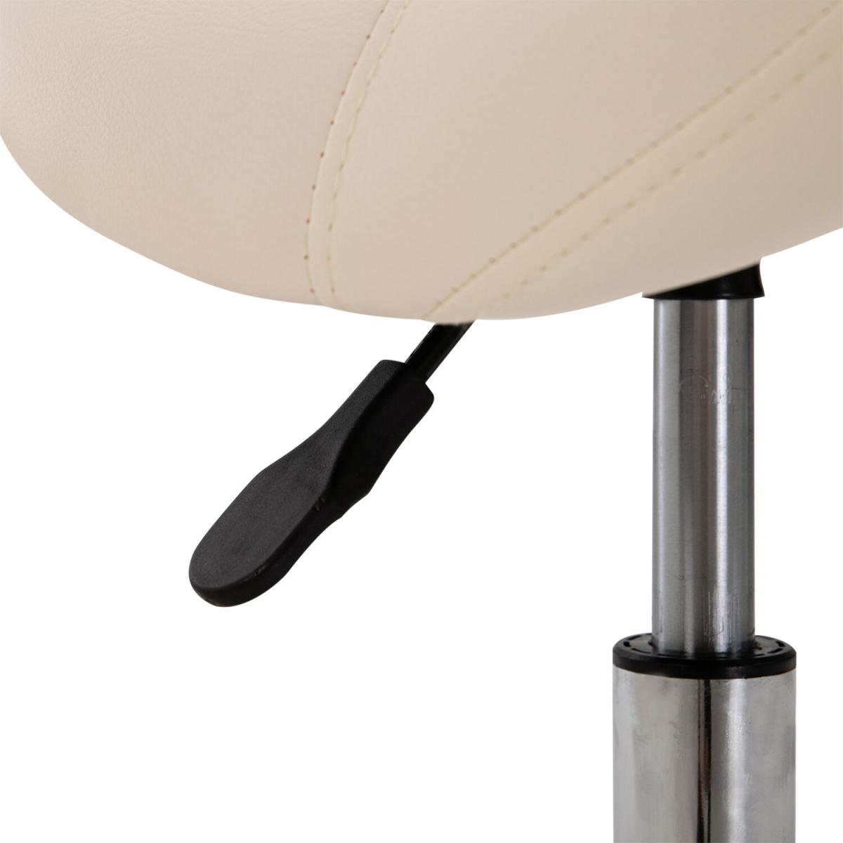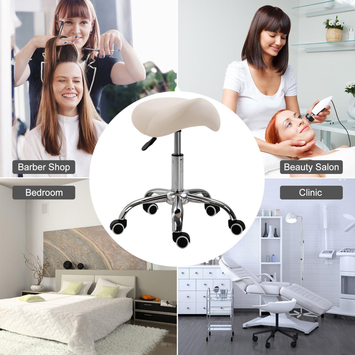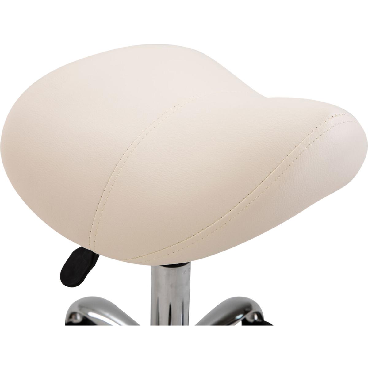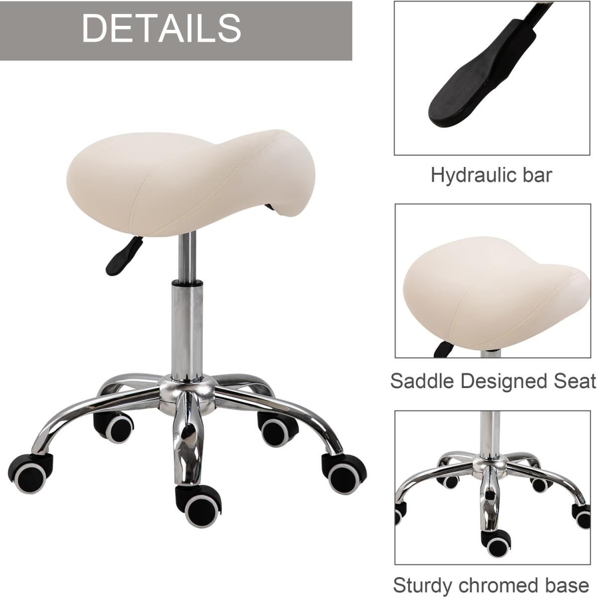 Ensure you have the correct posture whilst at work in your saloon/tattoo parlour, or even when you're at home with this saddle stool from HOMCOM. Using heavy-duty steel for a balanced and weighted base, it is made into a height-adjustable design, ranging from 49cm to 61cm for it to suit your needs and level of tasks. Curved in shape, the padded seat allows you to sit comfortably whilst keeping you supported and inclined to sit upright and in the correct posture, with faux leather upholstery for easy cleaning. It's finished with five wheels for you to move around easily when seated. The seat to do it all in.