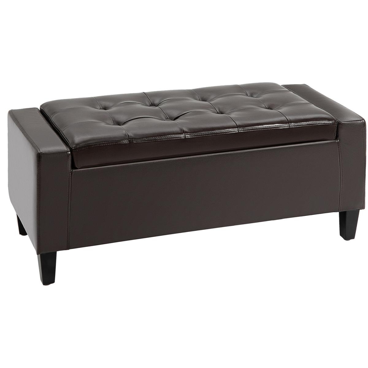 PU Leather Storage Ottoman Bench Footrest - Brown