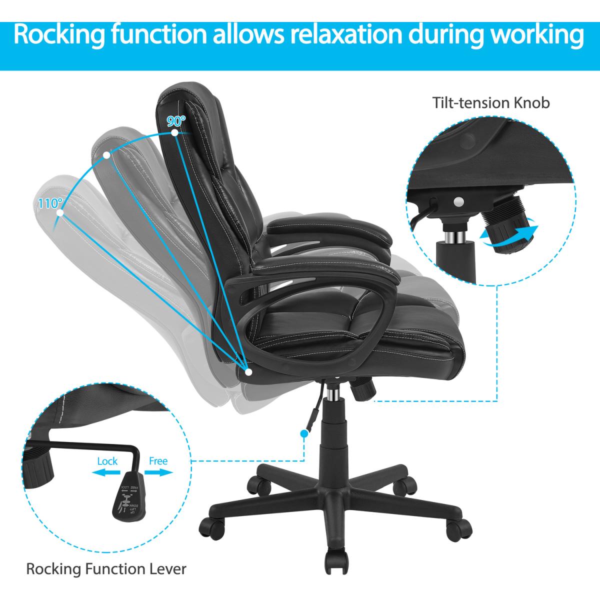 Thinking of something new for your office or bedroom A cozy and elegant PU leather chair can be a nice choice. PU leather-covered chair is both easy to clean and long-wearing. A durable steady frame makes sure our customers enjoy comforts and relaxing sitting. The seat height is adjustable according to individual needs. To add more fun to an office chair, the center-tilt tension is also adjustable for users to rock back and forth. Upholstered padded seat and high back help release your muscle tension during long office hours. Mute castors allow 360 smooth mobility without scratching the floor.