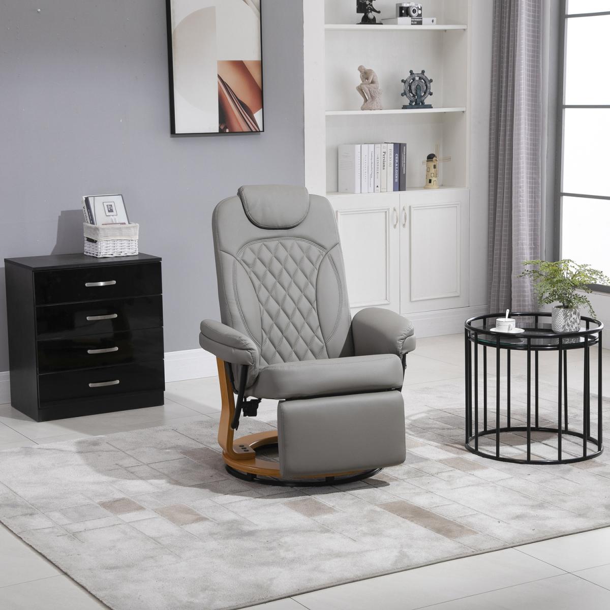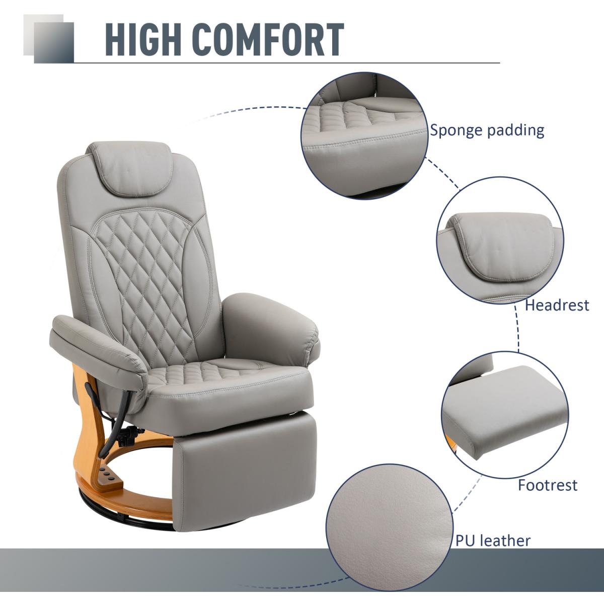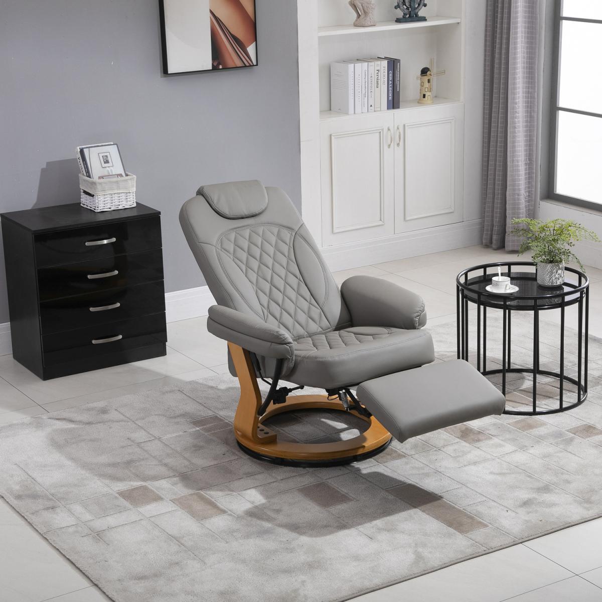 Unwind after a tiring day in true comfort - bring this manual recliner from HOMCOM into the home. It's wrapped in smooth PU upholstery and filled with thick foam padding so you can sink in with ease. The back tilts back to a maximum angle of 135 degree, which when paired with the footrest creates the perfect seat to relax in. The seat is attached to a beautifully polished wood base, which keeps it balanced and stable. It's finished with diamond panelling on the back for a stylish look.