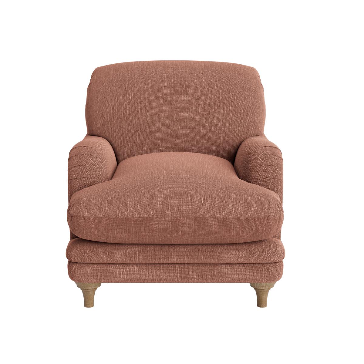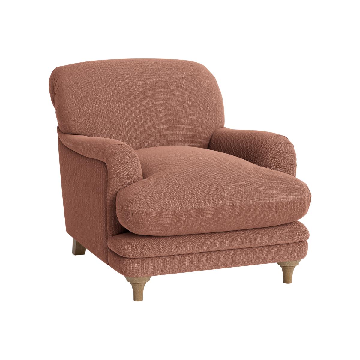 I love this armchair for its inviting and soft silhouette, making it a perfect statement piece in both traditional and contemporary interiors. It works well in cosy living rooms, reading nooks, or even master bedrooms looking for a touch of charm. For styling, consider pairing it with textured cushions or a small side table to create a practical yet stylish corner. Its warm hue lends itself to earthy, neutral palettes, but it can also pop against cooler tones for visual contrast. Practical tips include keeping the surrounding decor simple to let the piece shine or layering with tactile fabrics for a more hygge-inspired look. Overall, this is a versatile addition that combines comfort with understated elegance.