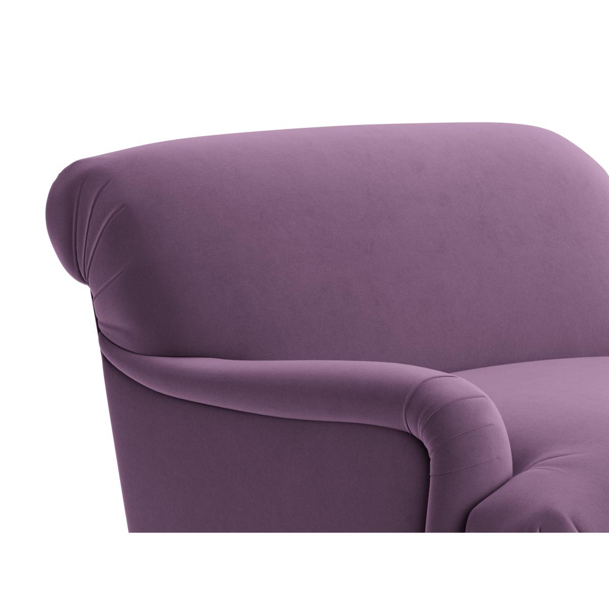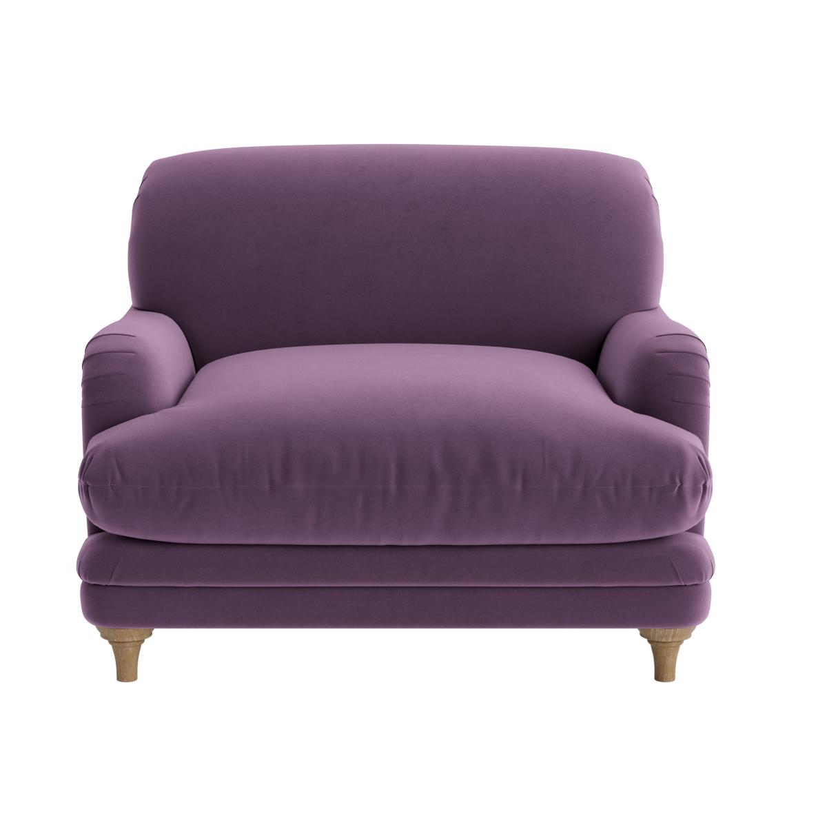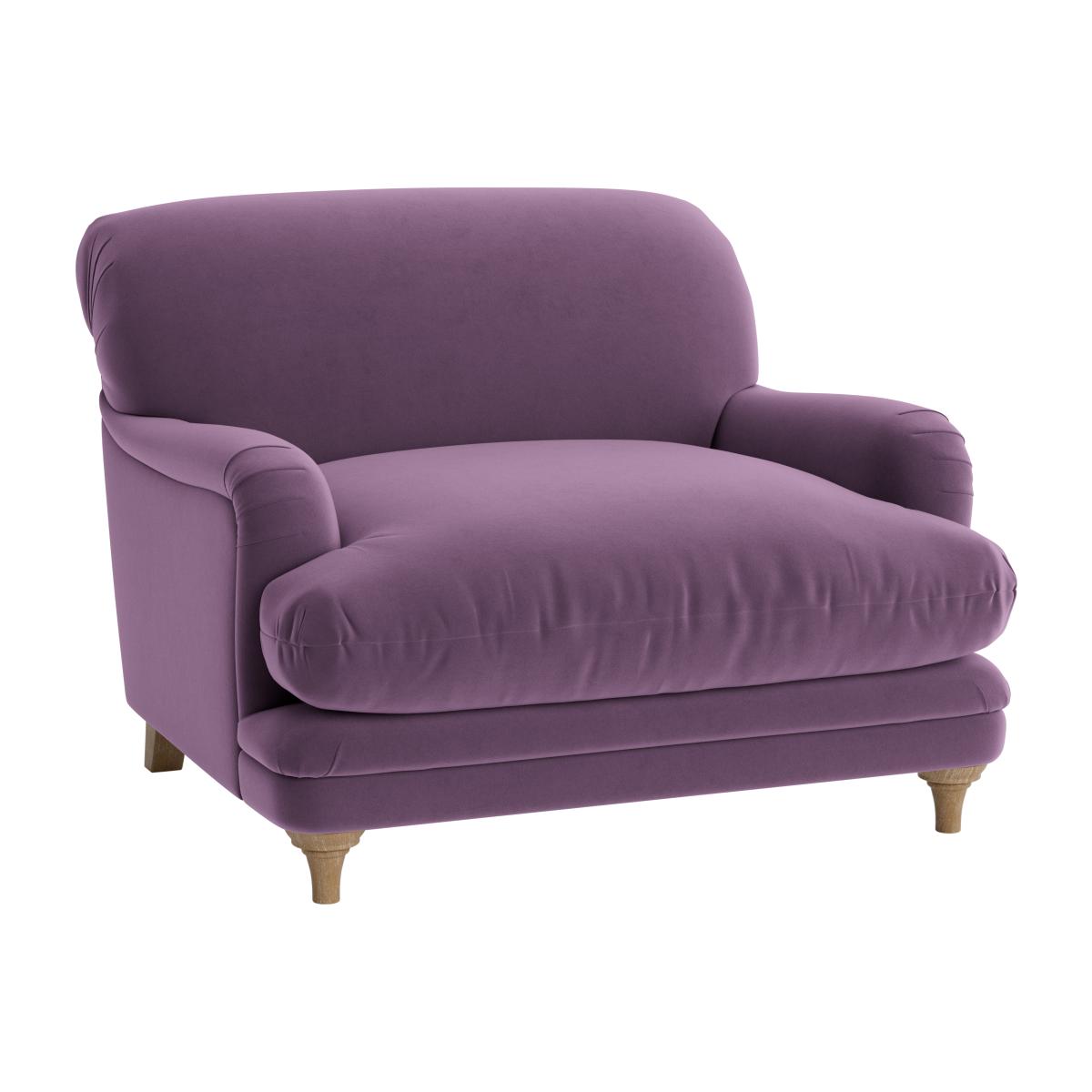 I love this little loveseat for its playful yet versatile design. The plush, rounded silhouette makes it perfect for cosy spaces, and the soft purple hue adds a charming pop of colour without overwhelming the room. It works well in eclectic, contemporary, or even retro interiors, especially when paired with layered textures and complementary tones. For styling tips, consider balancing it with neutral or grey tones for a calm feel, or add contrasting cushions in bold patterns for visual interest. Its compact size makes it ideal for smaller living rooms or as an additional seating option in larger spaces, giving you flexibility without sacrificing style.