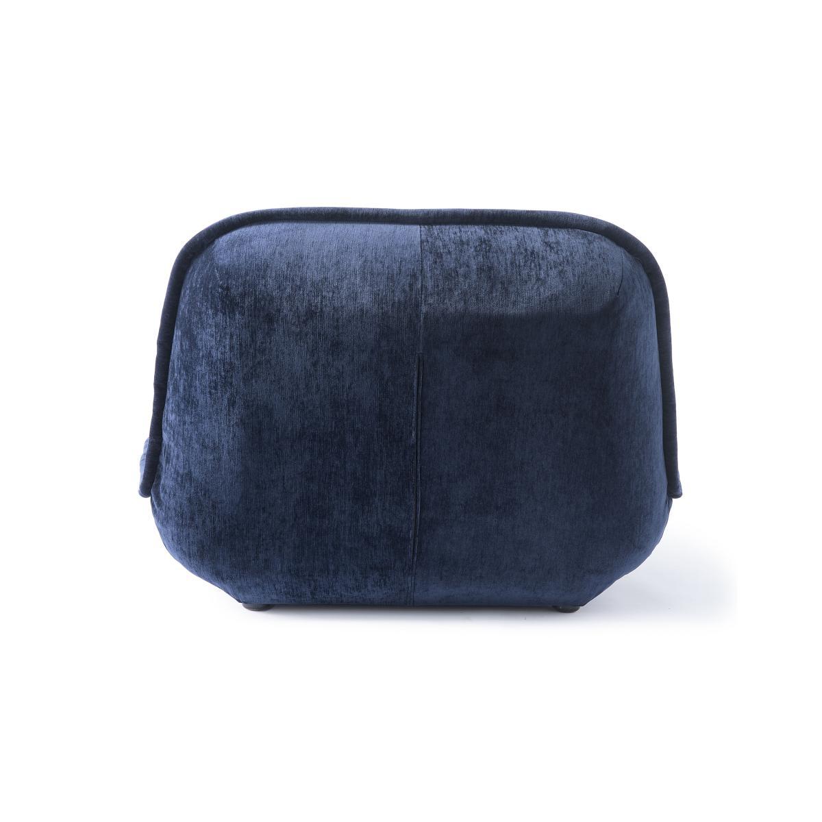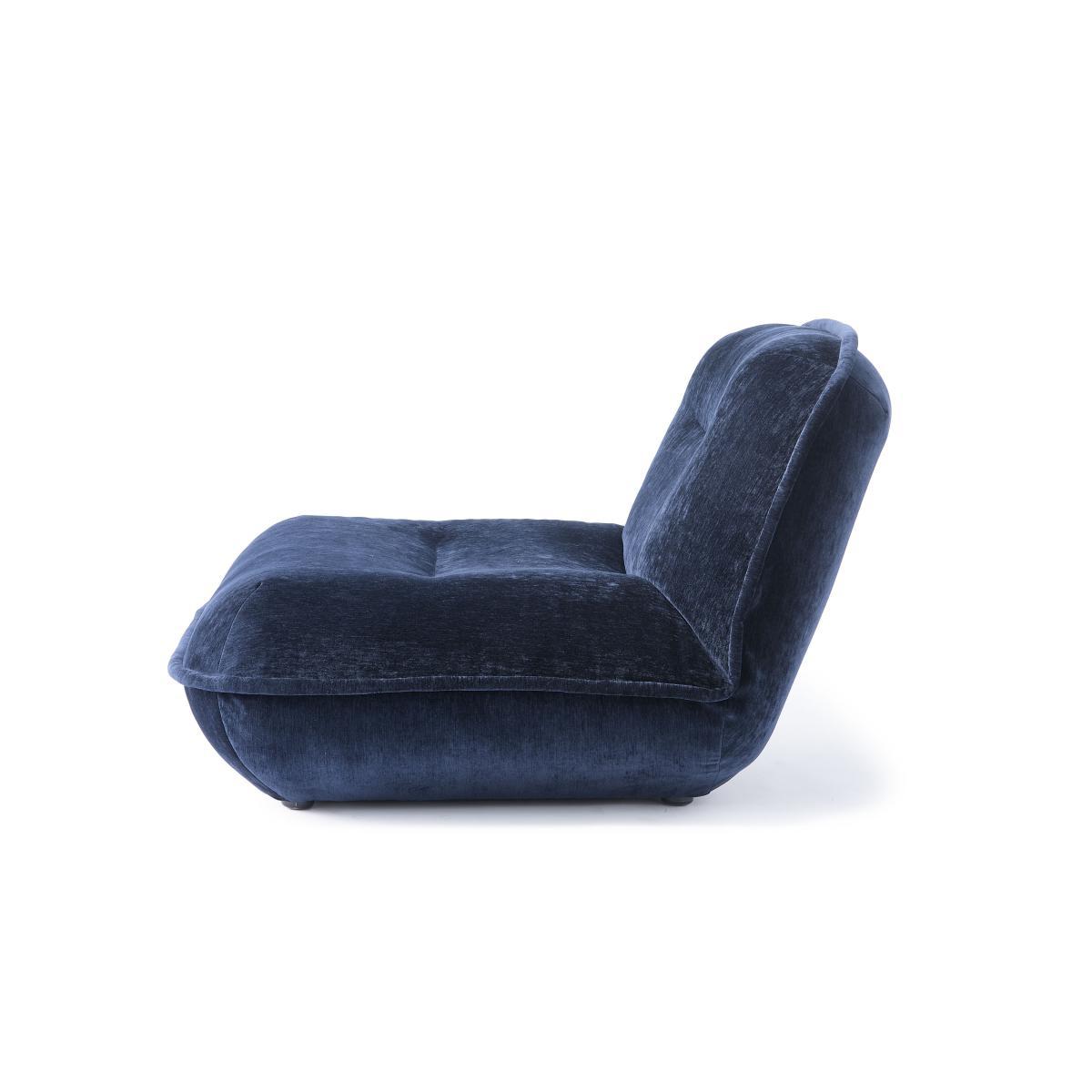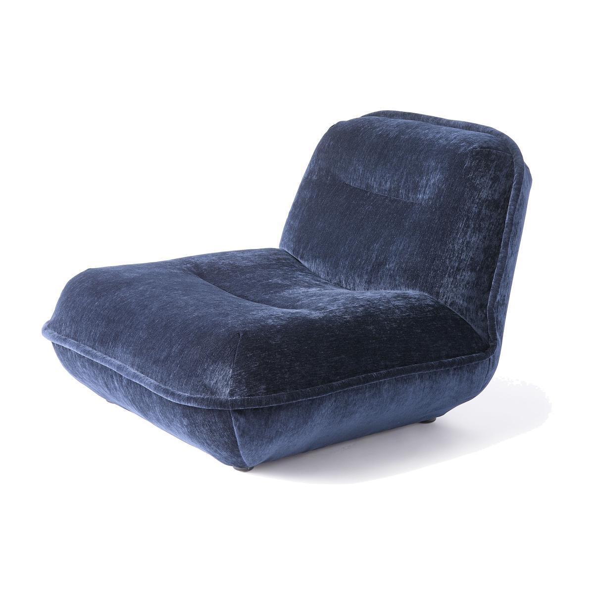 A seventies style for this collection of lounge seats made up of a fireside chair and a pouf. Soft and silky, the velvet reflects the light, giving the fabric a satin shine. The lines are enveloping, plump and generous. To guarantee optimal comfort, the padding consists of layers of different densities (foam, fibre and feathers). The seat on Nosag springs has very good elasticity and a long life. You’ll love the elegant, urban, relaxed look of this low-to-the-ground pouf. The Puff series is made in the Netherlands. The two pieces, fireside chair and pouf, can be used separately or together.