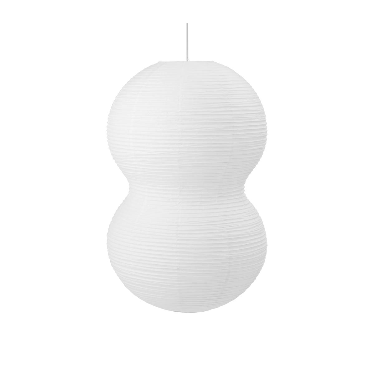 PLEASE NOTE: lampshade sold separately. A white fabric cable with a socket and ceiling rose is sold separately to fix the pendants. A current, modern reinterpretation of the classic rice paper lamp The Puff lamp collection offers a modern, sculptural take on the traditional rice paper lamp, thanks to a design based on simple, organic lines. Puff lights pay homage to one of Asia's oldest traditions: rice paper lampshades have been used for centuries and originally decorated temples. The Puff collection was inspired by a trip to Japan, where designer Saskia Huebner saw countless variations of the rice paper lamp. She then focused on finding the right balance between playful sculpturality and functional minimalism, to end up with a collection that invites us to have fun around associations of different voluminous shapes. Puff lamps will find their place in the lobby of a hotel or in a restaurant, as well as in a private interior. Volume and lightness Rice paper lets you create an impressive volume, without superfluous material, to avoid a product that’s too bulky or heavy. By delicately concealing the light source, it provides natural, warm, subdued light. In this way, Puff lamps pleasantly light up the room while showing off their sculptural organic forms. Inflated balloons The combination of design and this lightweight material evokes inflated balloons, available in four different shapes and sizes, each light taking its name from its particular shape. Twist consists of two spheres merging into one, and is available as a pendant or table lamp. The Puff collection will find its place in all interiors, whatever the space available, in minimalist interiors as well as in more daring commercial or private spaces.