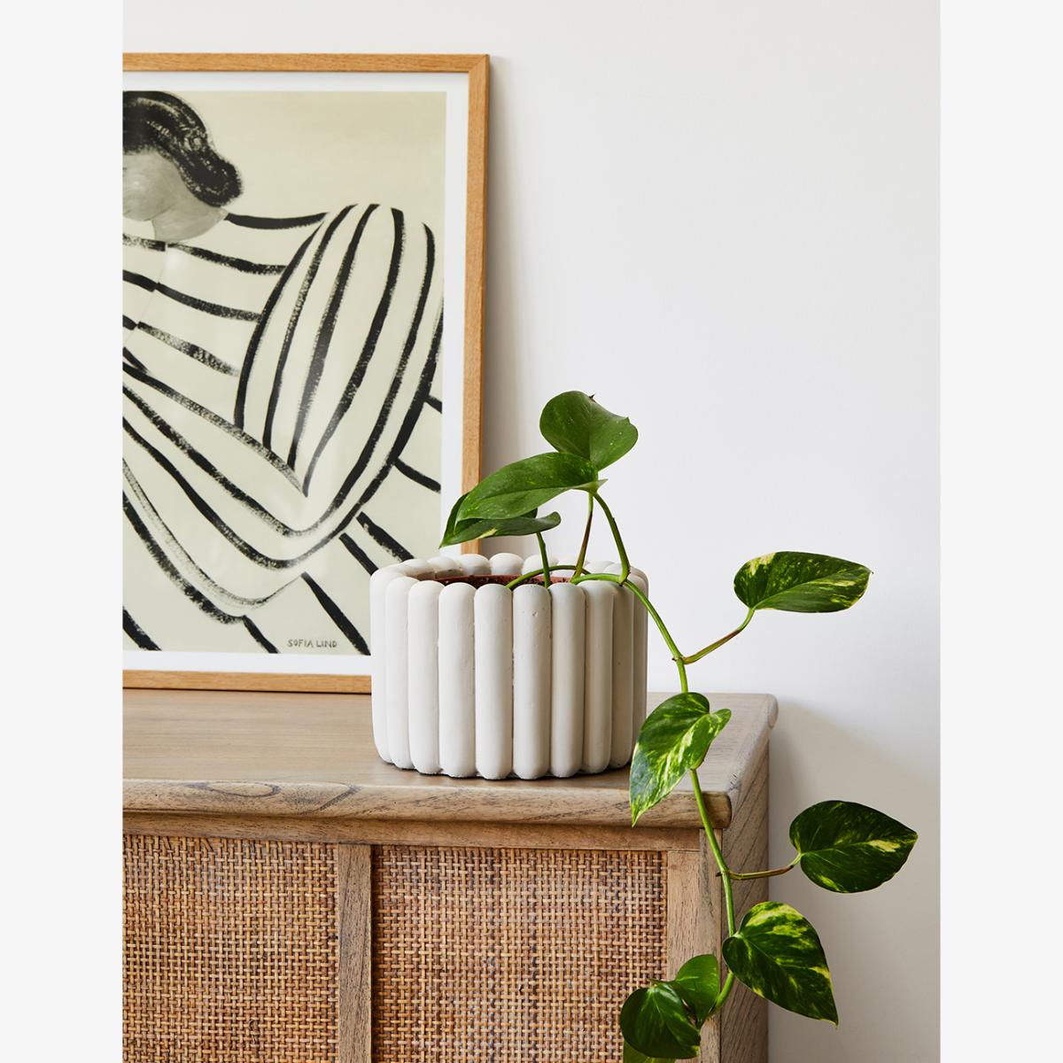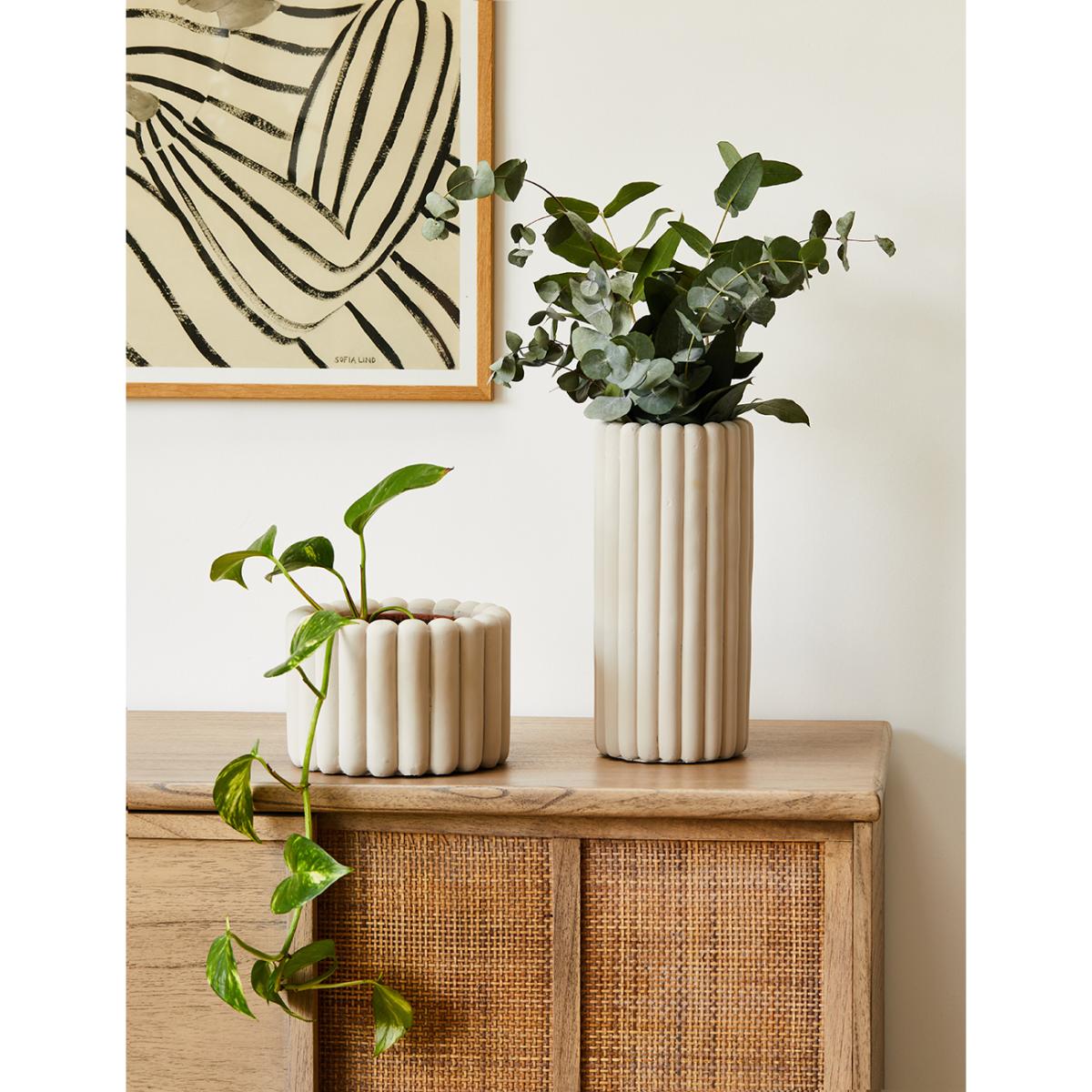 Upgrade your home decor with our classic Puffed Ridge Plant Pot. This planter features a beautiful taupe tone with soft ribbed detailing, making it the perfect complement to any contemporary home. It's crafted from concrete and expertly sculpted into a unique shape that adds depth and texture to any room. It's the perfect companion for your fresh flowers and artificial plants. Pair with our Large Puffed Ridge Vase for a harmonious and tonal interior style.