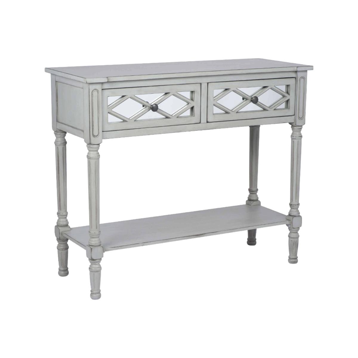 Contemporary console table boasting a soft grey finish. An elegant addition to your home, this console table is part of the Puglia range from Pacific Lifestyle. This beautiful piece boasts a soft grey wooden finish, complete with two delicate mirrored drawers, each with a wooden overlay. The console table also comes with a low shelf, perfect for storing any books or magazines. It's subtle design makes it perfect for use in lounges, hallways, dining rooms and bedrooms.