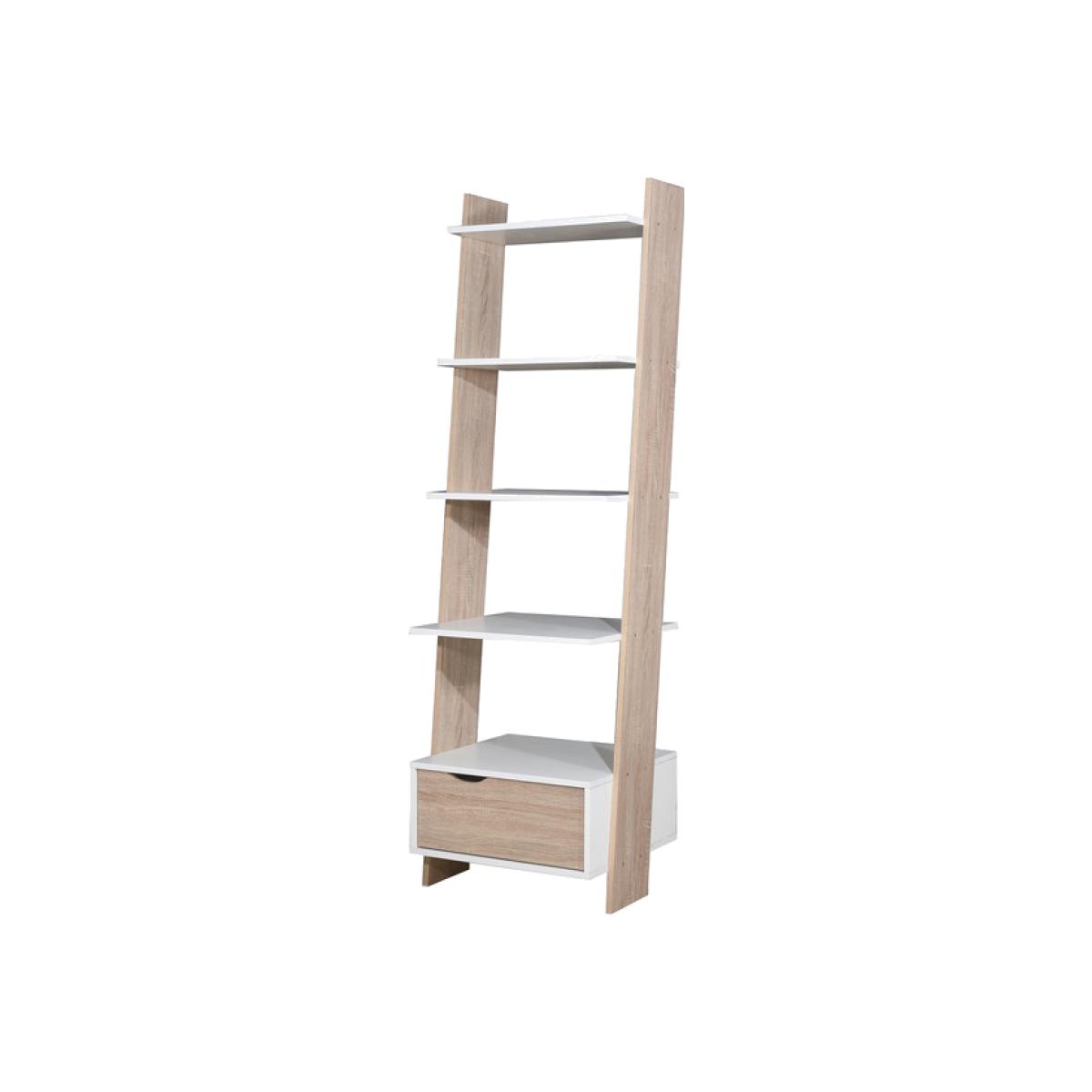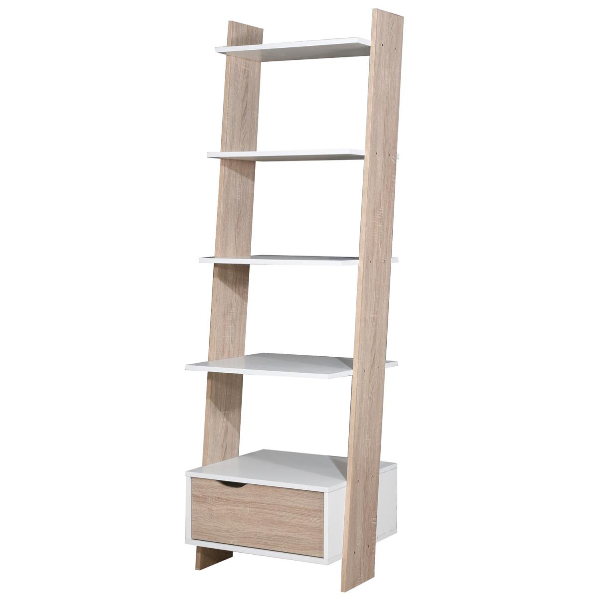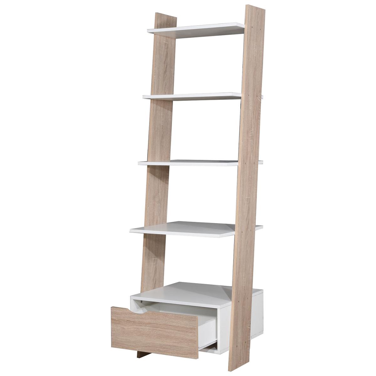 Pulford Ladder Bookcase With Drawer - White & Sonoma Oak