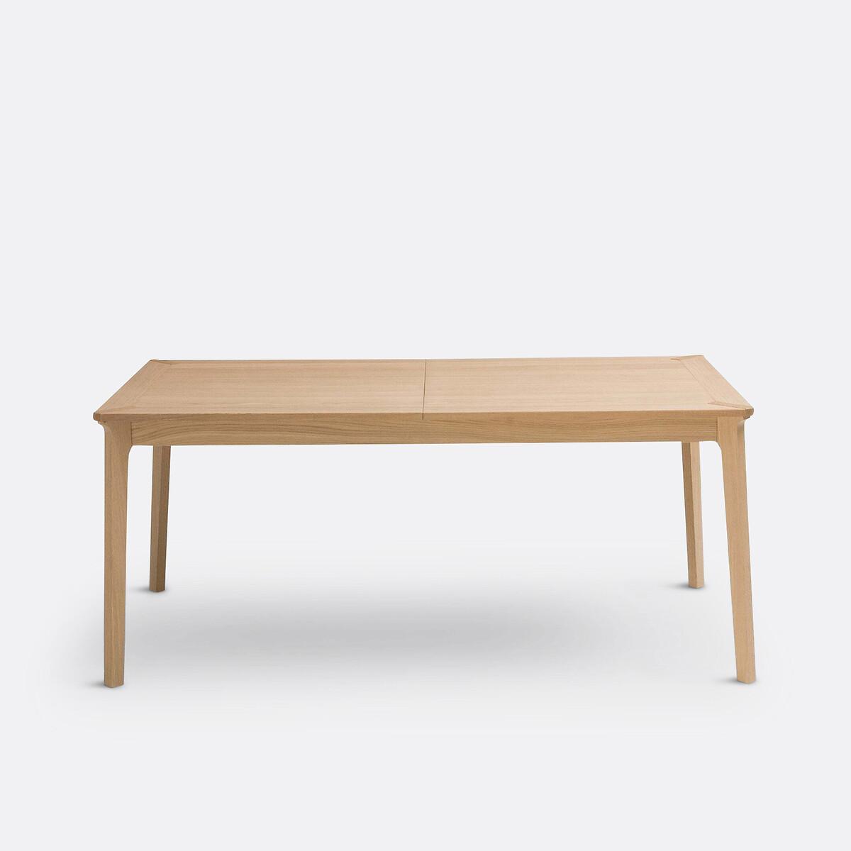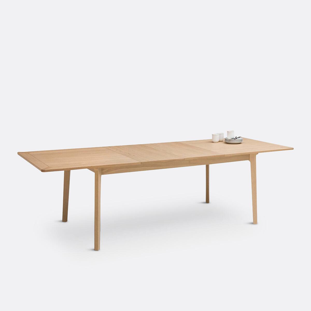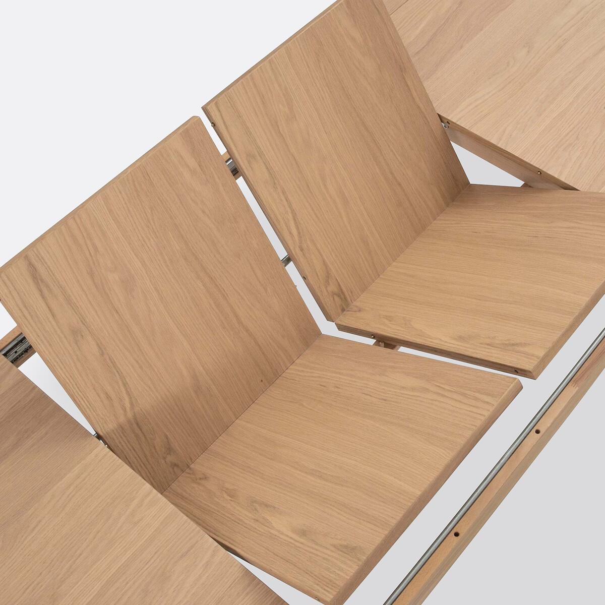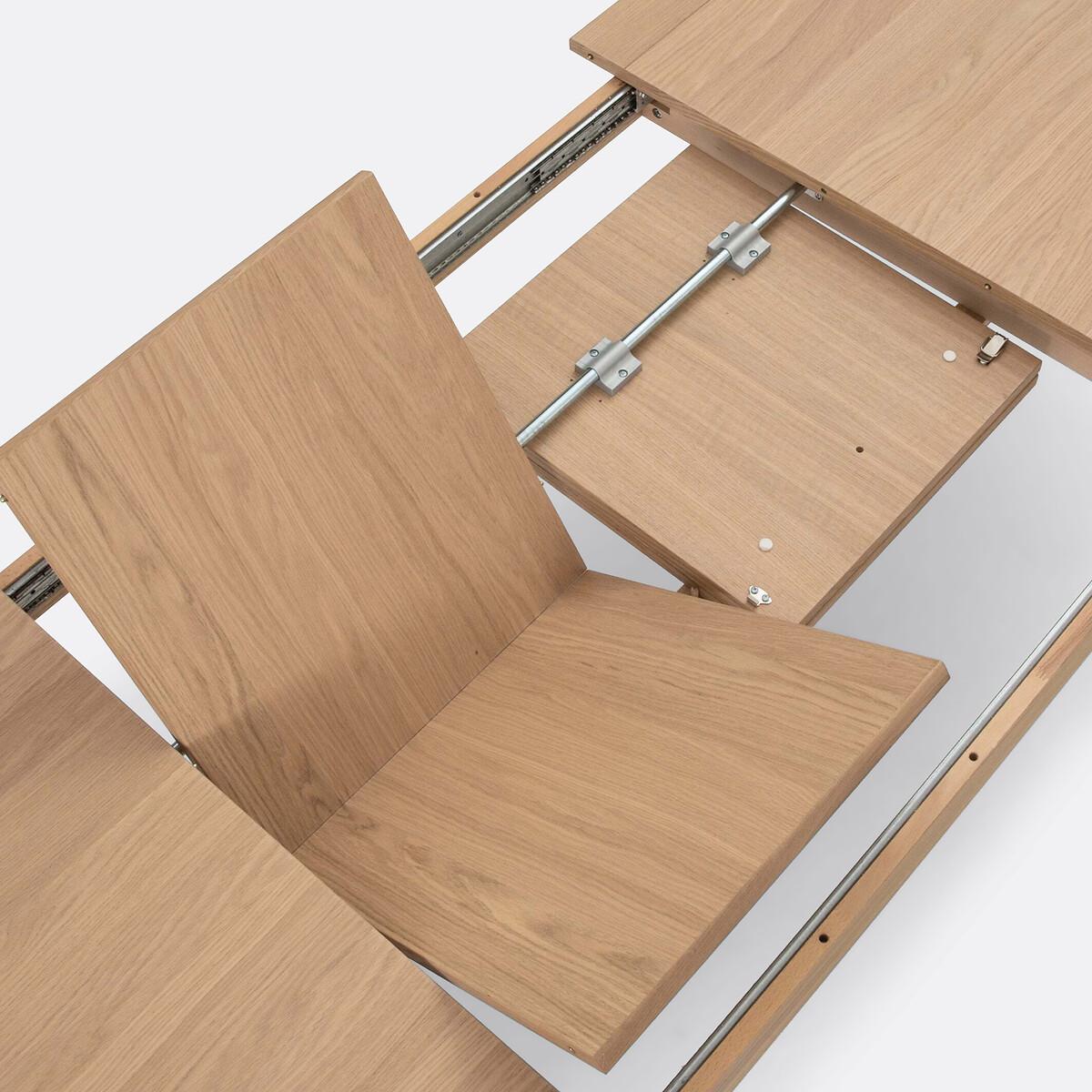 The Pully oak veneer dining room table. In addition to its slender and elegant lines, its 2 butterfly extensions will allow you to seat up to 10 people.