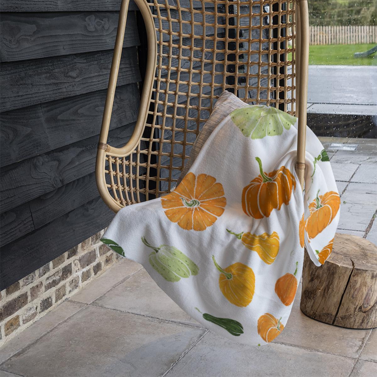 I really like this orange pumpkin throw - it's perfect for adding a seasonal touch or a pop of colour to a neutral interior. It works particularly well in cosy living rooms or country-inspired spaces where natural textures and earthy tones are key. As a stylist, I’d recommend draping it over a sofa or armchair for a quick colour update, or folding it neatly on the bed for a charming autumnal vibe. To make the most of it, pair it with plain, muted textiles to let the vibrant pumpkin pattern stand out, and add some complementary cushions or accessories in soft greens or warm browns. It's a versatile piece that brings a cheerful, harvest-inspired feel without overwhelming the space.