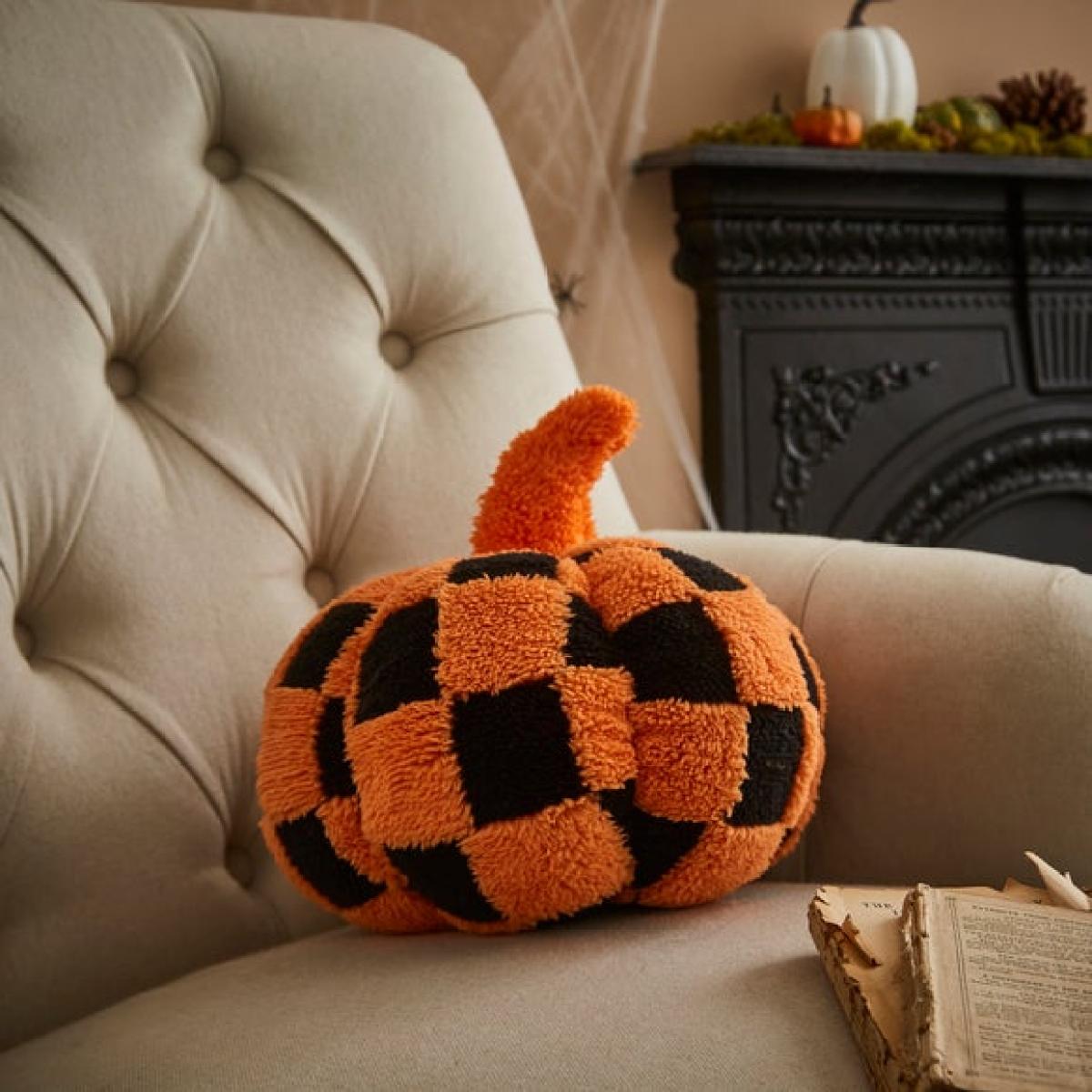 I love this pumpkin-shaped boucle checked cushion for adding a cosy, playful touch to a variety of interiors. Its unique shape and textured fabric make it a fun statement piece, perfect for autumnal or seasonal decorating, but versatile enough to work year-round in both casual and eclectic spaces. It pairs well with neutral, warm-toned sofas or armchairs, and can be layered with other cushions for a more relaxed, inviting look. Practical styling tips include using it as a centrepiece on a neutral sofa or mixing it in with other textured cushions to create visual interest. Its quirky design is particularly suitable for kids' rooms or to add a bit of whimsy to a seasonal display, making it a great find for those who want to mix personality with comfort.