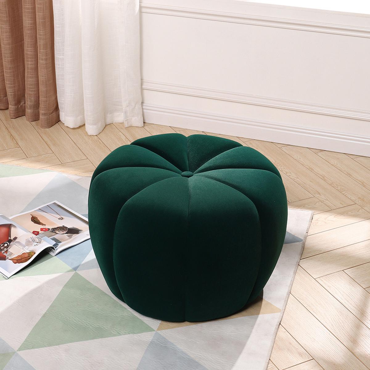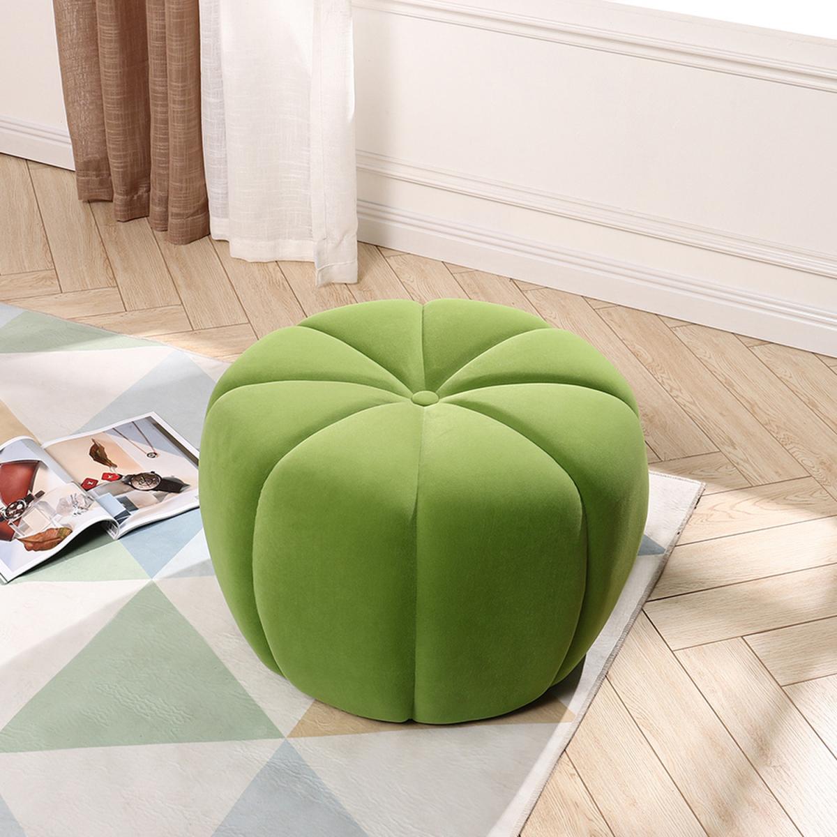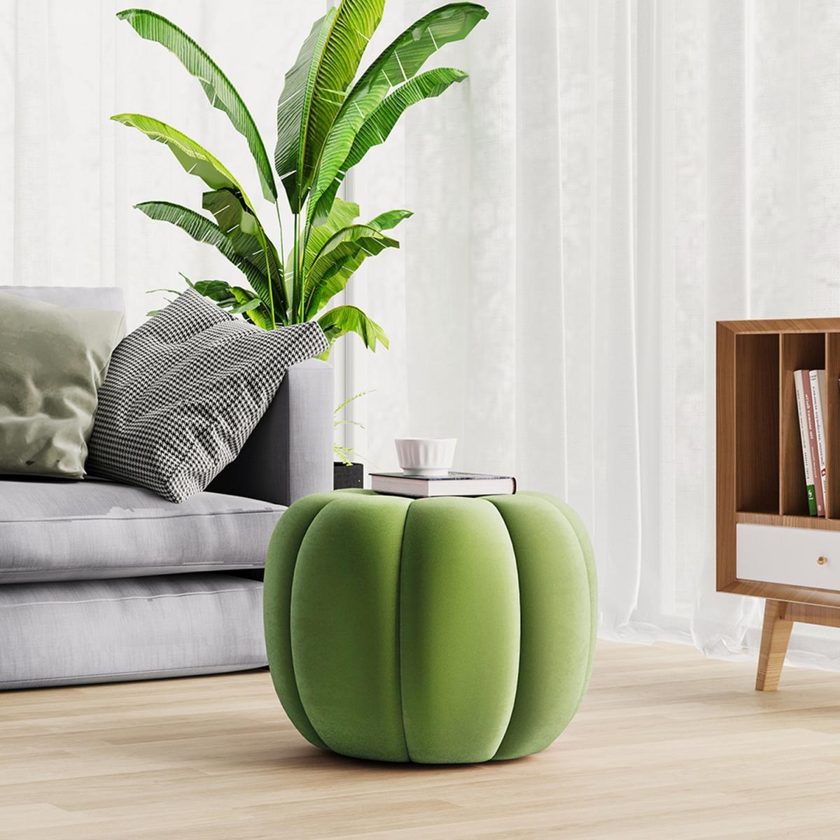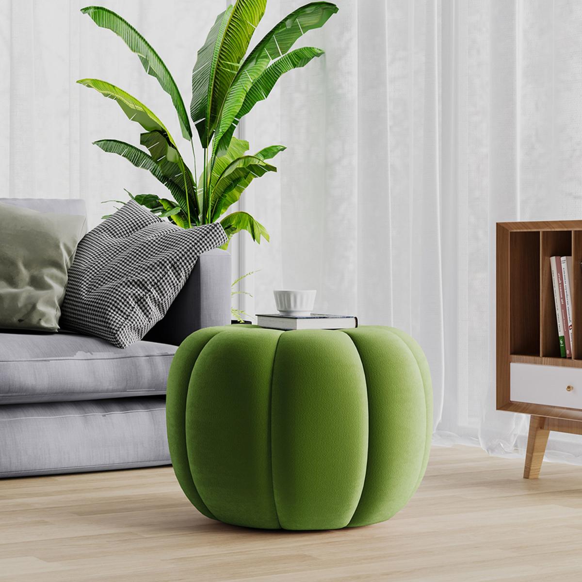 Pumpkin shaped Upholstered Footstool - Green / 55cm