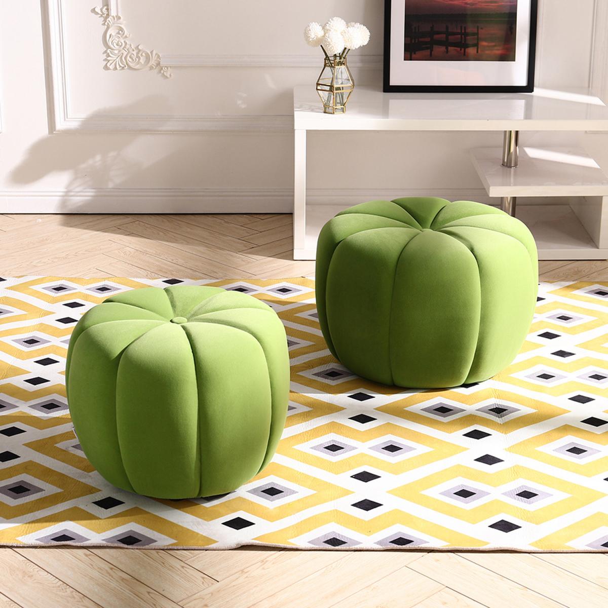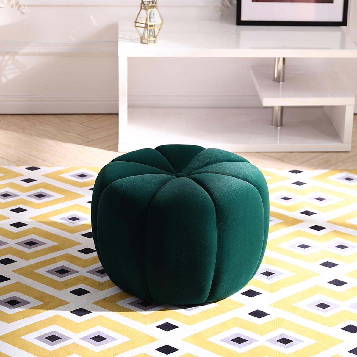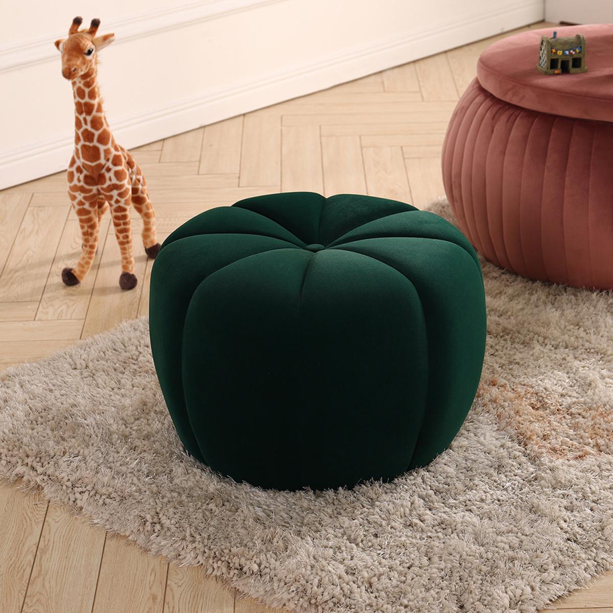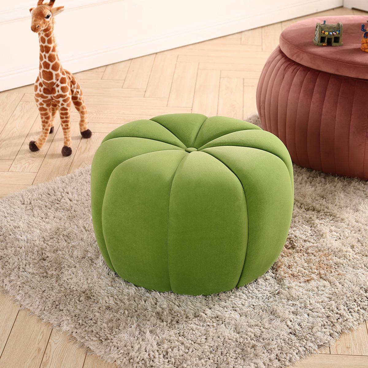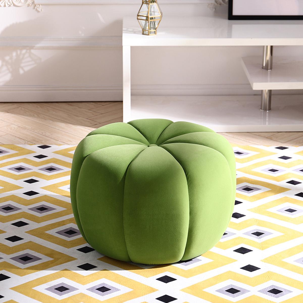 Pumpkin shaped Upholstered Footstool - Green / 55cm