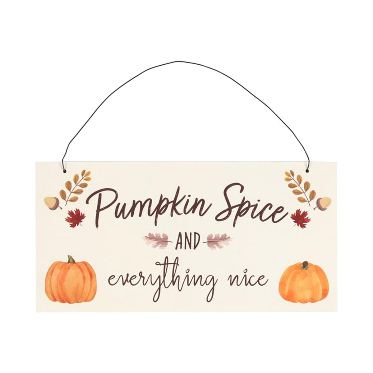 Pumpkin Spice and Everything Nice Hanging Sign - White