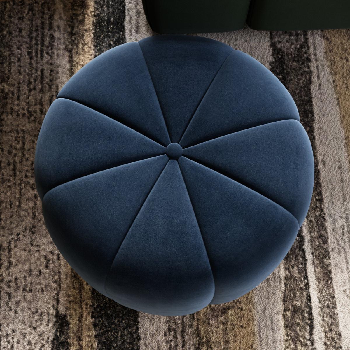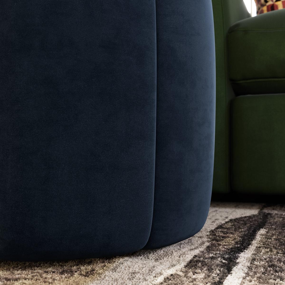 I love the navy footstool for its versatile colour and plush velvet texture, making it both functional and stylish. It works particularly well in contemporary and eclectic interiors, where its rich hue can add depth or stand out as a statement piece. Practical styling tips include pairing it with a mix of soft textures and complementary colours like warm woods or neutral shades to create a balanced look. It’s perfect as extra seating or a cosy spot to rest your feet, and its compact size makes it easy to position in front of a sofa or alongside a chair for a relaxed, inviting feel.