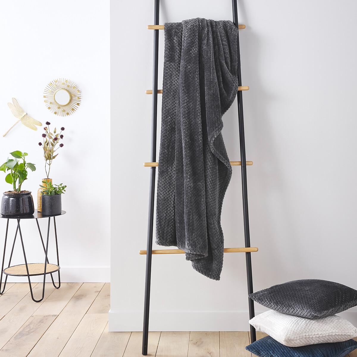 A fleecy blanket. Product Details • Waffle effect microfiber 100% polyester • Hemmed edging. Care Advice • Machine washable at 30°CDimensions • 130 x 180cm • OEKO-TEX® Standard 100. Standard 100 certification by OEKO-TEX® tests textile products for harmful substances via an independent, international label.