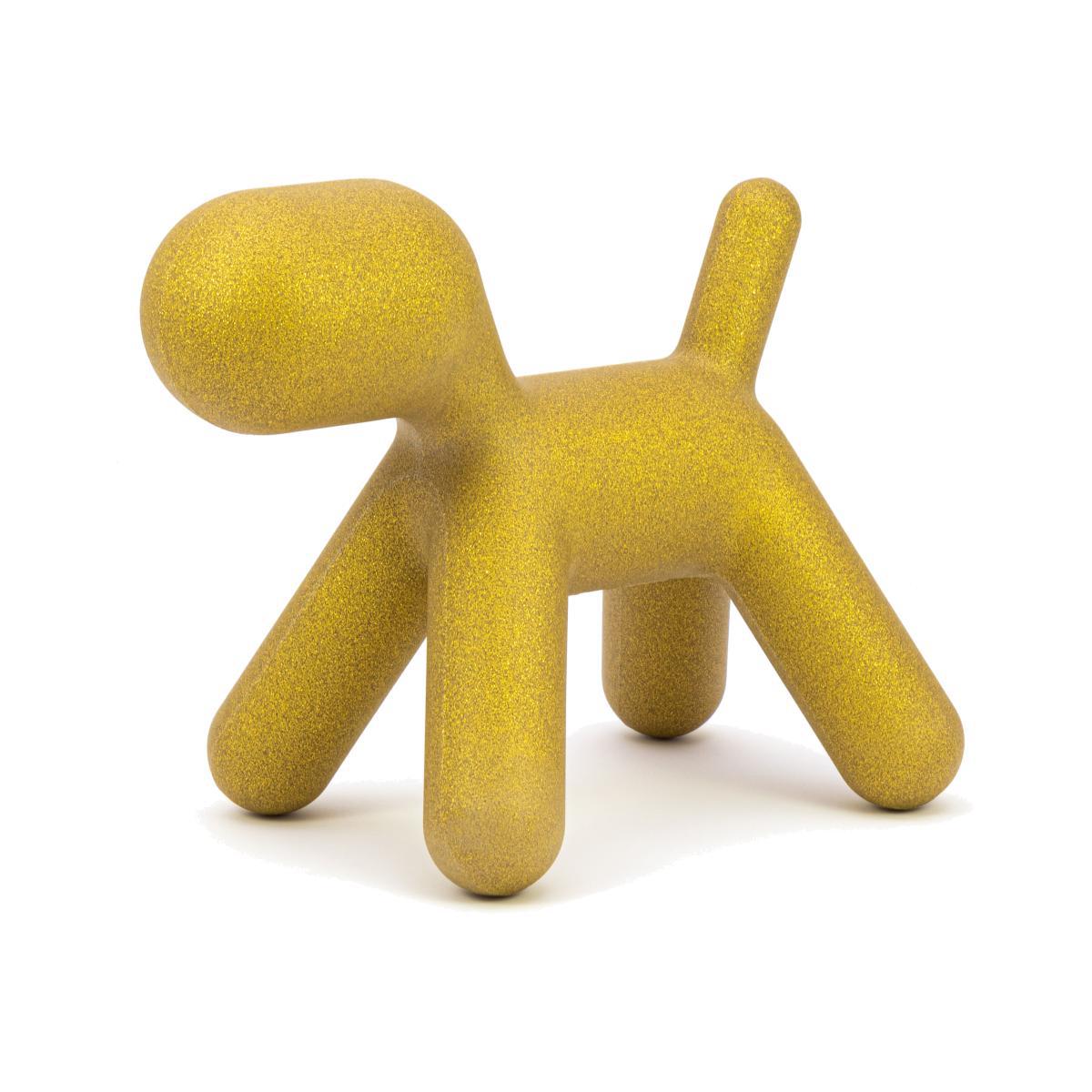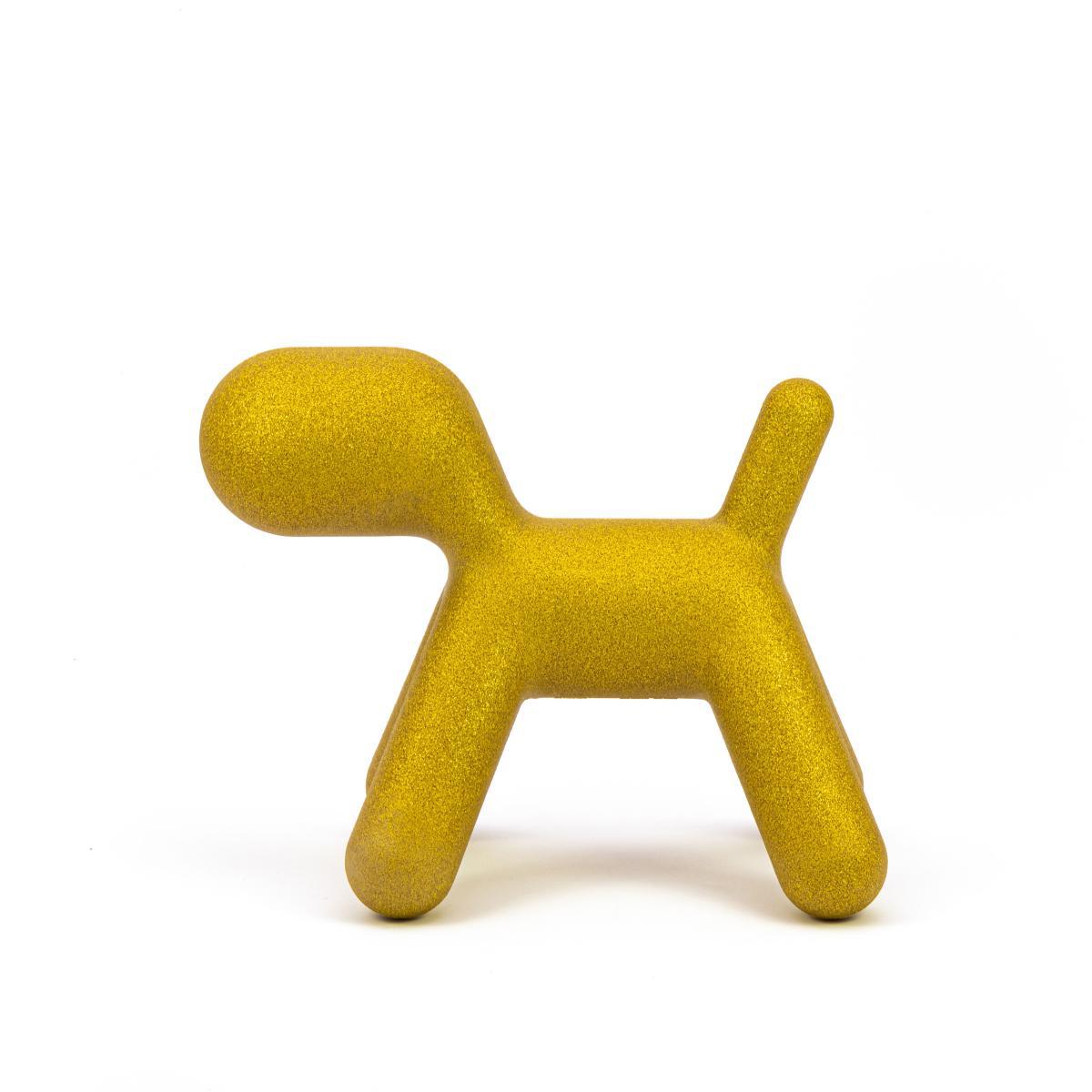 Notice to collectors: for Christmas, Magis has a surprise in store! The iconic Puppy dog is available for the festive season in a new, chic and glamorous version: it's dressed in golden glitter. This limited edition is a future collector’s item: THE perfect gift to give, or to keep for yourself! Created by the king of pop design, Puppy has achieved iconic status. It was in 2003 that this stylised dog came out of the tender, playful imagination of Eero Aarnio, a famous Finnish designer who created the iconic Ball Chair in the 60s. Straddling the border between art and design, Puppy is both a sculpture and a child's seat. This dog, which doesn’t bark and never bites, is the perfect companion! Made from roto-moulded polyethylene, Puppy is lightweight, strong and can be used outdoors. In a child's room, Puppy is a really fun seat for kids who will delight in sitting on it. Its rounded lines and the lightness of the plastic material are safe for toddlers. Its clean lines are a springboard for the imagination of children who will make it their playmate. In living room or garden, Puppy acts as a contemporary sculpture. With its ultra-trendy style and iconic silhouette, Puppy catches the eye of all design aficionados. One thing is sure: Puppy's success is not about to come to an end!.