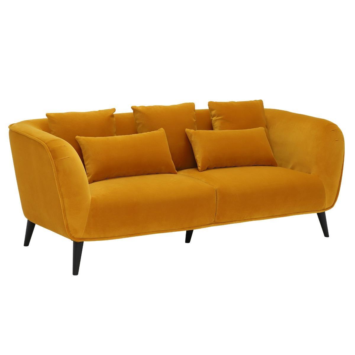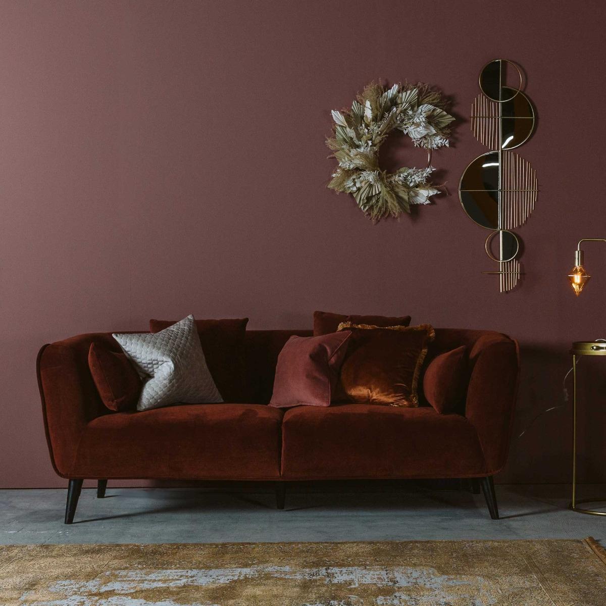 Design. A warm welcome at the end of a long day, the Purcell 2. 5 seater sofa offers an incredibly comfortable sit with stunning style to match. Dressed in your choice of plush velvet upholstery, it is a truly gorgeous piece that feels just as good as it looks. Luxurious foam and fibre fillings give the sofa its visibly plump appearance, with scatter cushions for extra shape. Lifted off the ground on black wooden feet, it has a distinctly mid-century modern design that is at home in so many interior schemes.