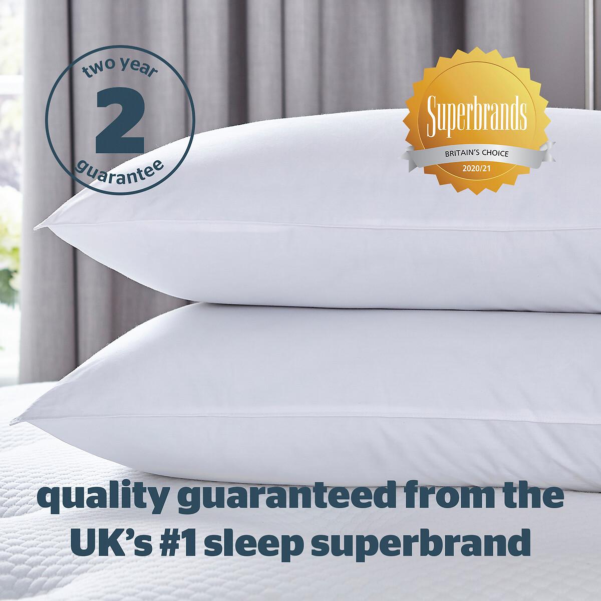 Relax in ultimate luxury with the Silentnight Pure Cotton pillows. The premium 100% cotton covers are naturally breathable, smooth and soft, making sure you get the perfect night’s sleep. The extra soft hollowfibre filling provides unbeatable comfort and gentle support. The Pure Cotton pillows are made in the UK and come with a 2 year manufacturer’s guarantee so you can feel rest assured with your purchase. These pillows are machine washable to ensure they stay fresher for longer. The pillows have hypoallergenic properties taking away any worry from those who suffer any household allergies.•Crafted with luxuriously soft and smooth pure cotton covers that are naturally cooling and breathable.•Filled with soft and silky fibres for supreme comfort.•Use one pillow for soft comfort or two pillows for medium comfort.•The pillows do not contain any materials that are likely to cause allergies.•You can wash your pillow to keep them feeling fresh and clean.•Guarantee: 2 year manufacturer’s guarantee for ultimate peace of mind, made in the UK.This product will be dispatched by one of our trusted suppliers. You’ll be contacted by their selected courier about your delivery. COMFY01. Goods must be unused and returned in their original packaging. If sealed for health/hygiene reasons they must also be returned unopened with seals, stickers and tags intact.