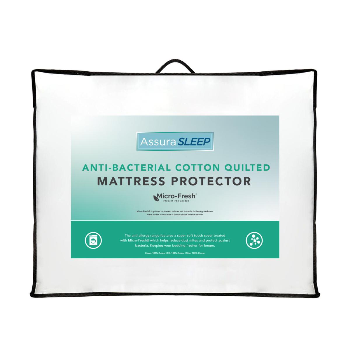 Our anti-bacterial pure cotton range is perfect for allergy sufferers. Covered in 100 233 thread count cotton and filled with luxury pure cotton and featuring an elasticated fit keeping it snug to your mattress. Treated with innovative Micro-Fresh which helps keep allergies and bacteria at bay and ensures freshness for longer.