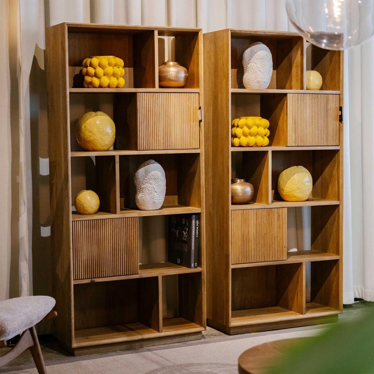 I’m a fan of the Tallis bookcase for its mix of open cubbies and fluted-panel doors - the subtle contrast between the light brown wood and white fronts adds texture without overwhelming the room. It sits neatly in Scandi, contemporary or minimalist schemes, and the varied shelf sizes mean you can balance books, ceramics and a few plants. Styling tip: group accessories in odd numbers and leave a couple of shelves spare to stop things looking crowded. Pop baskets or boxes behind the fluted doors to hide paperwork or cables, and refresh the look by rotating in new books or small artworks every few months.